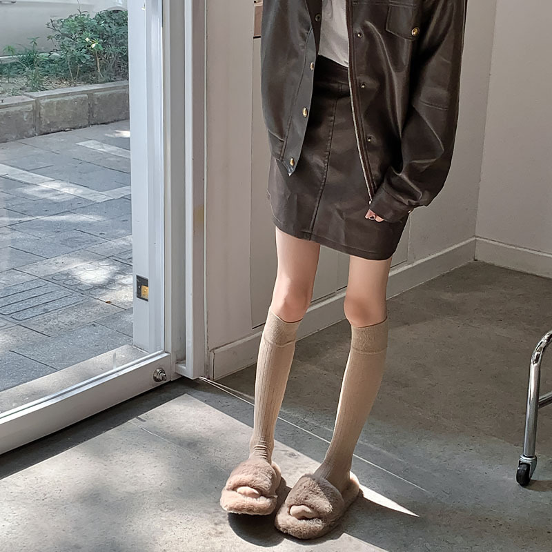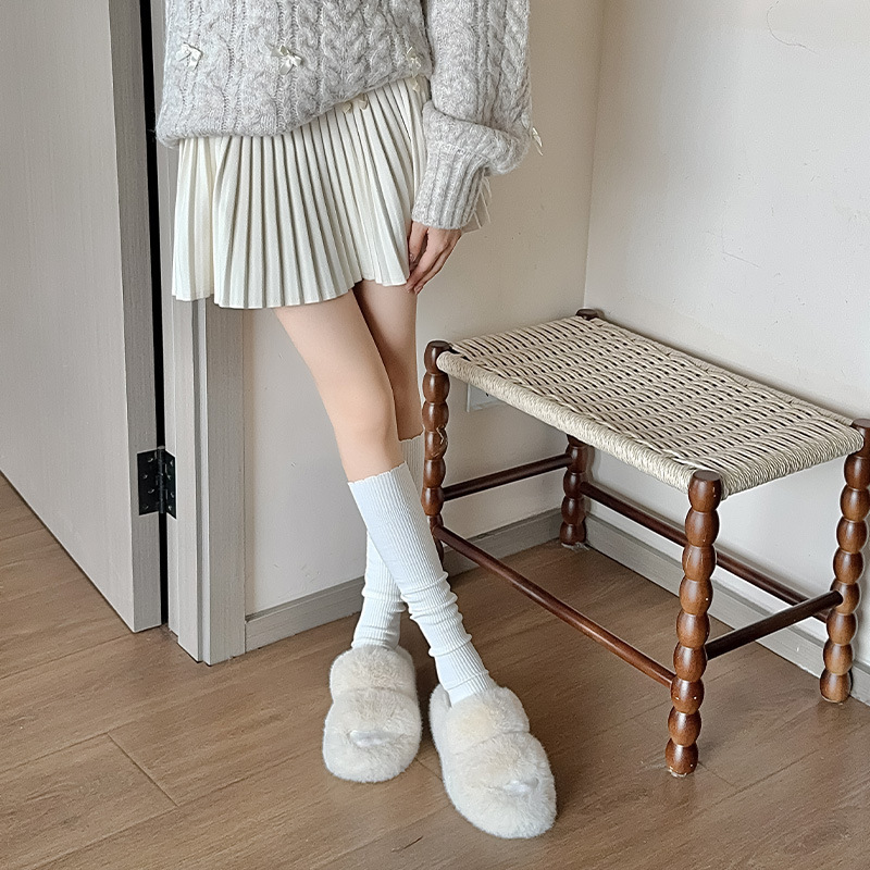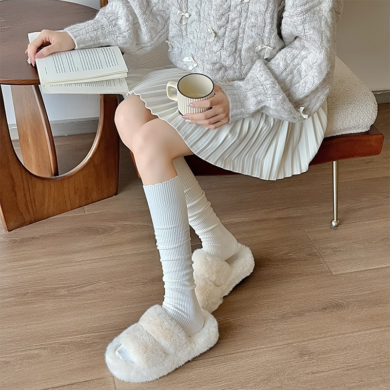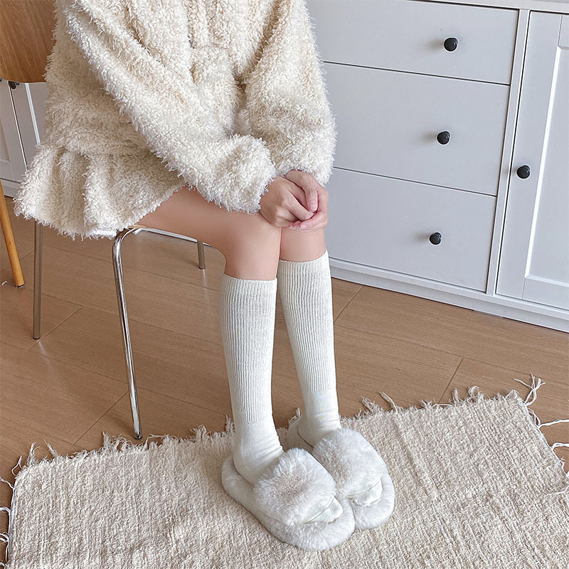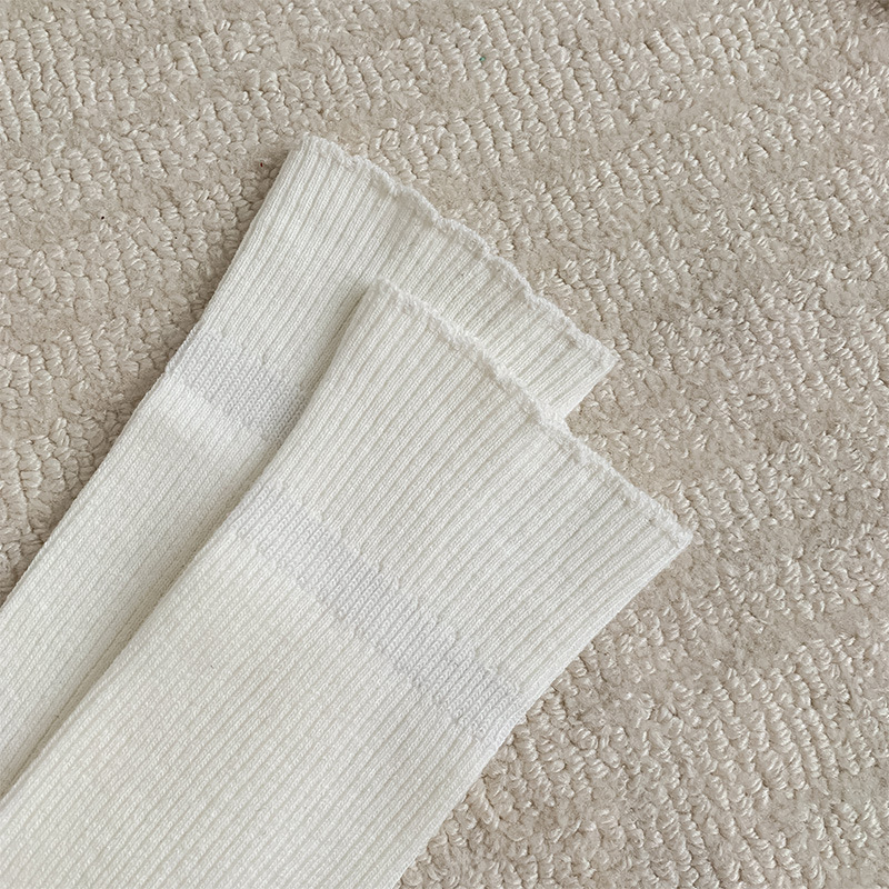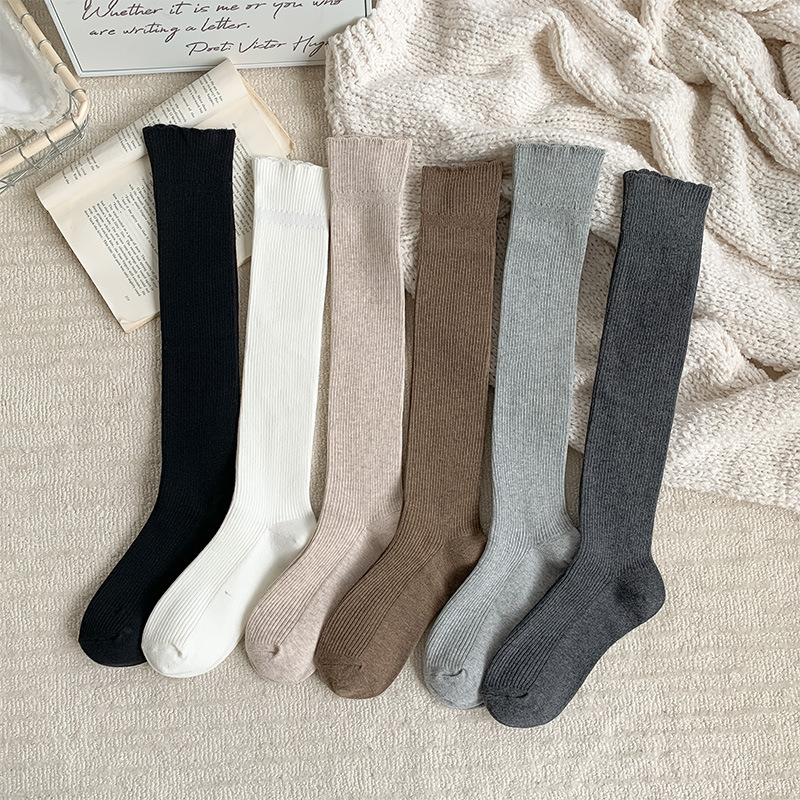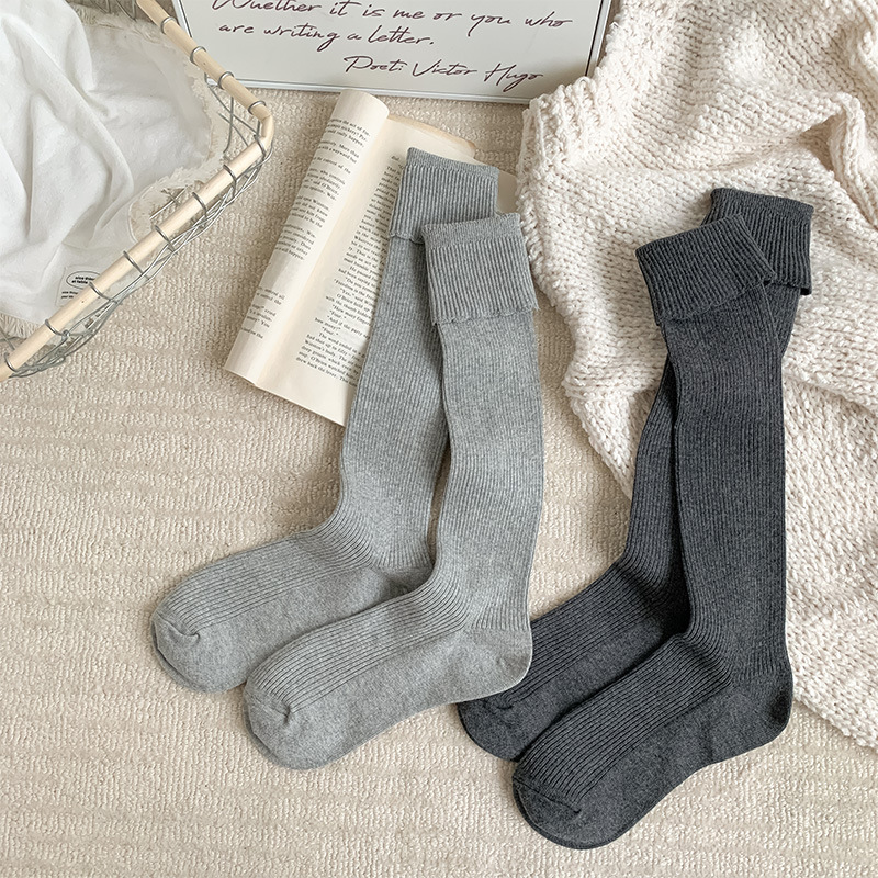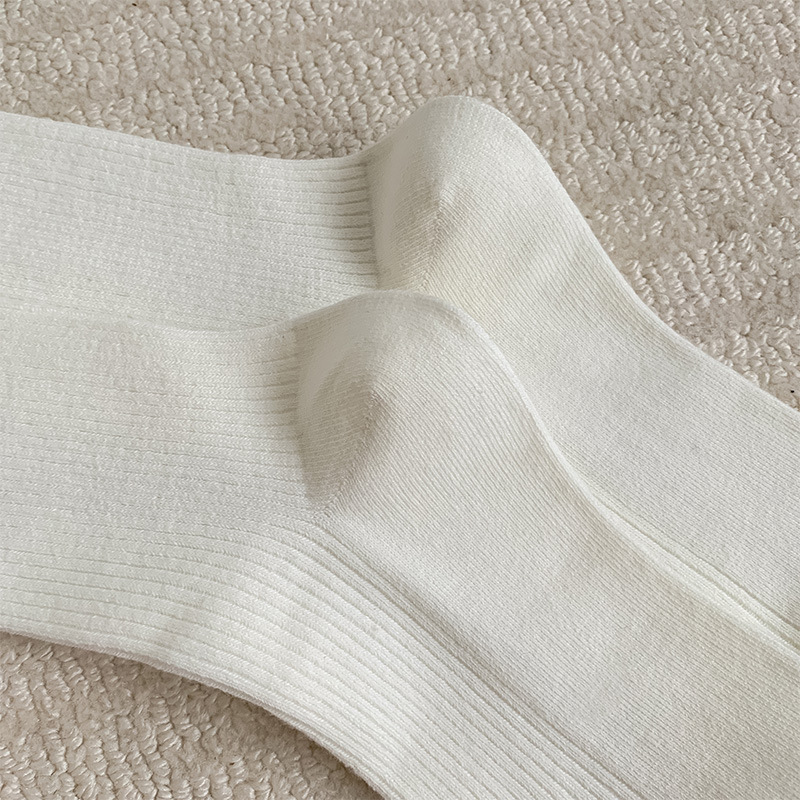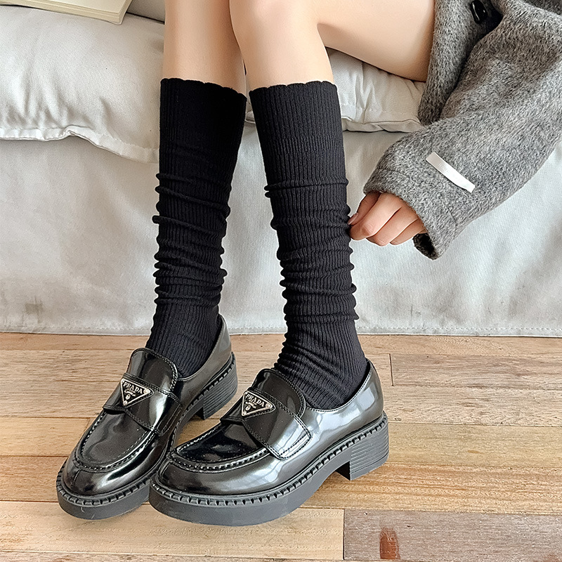 原宿風日本式太線靴下女性秋冬ファッションと布マークの中筒靴下シンプルな縦紋純色のスタッキングソックス