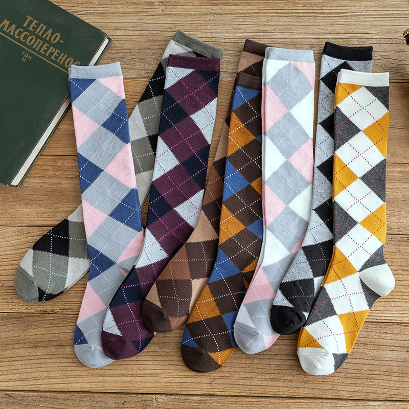 菱格のすねの靴下の子供の韓国版の学院の風の日本のjkの制服の靴下の秋冬の復古の英倫の風と膝の高い靴下の靴下