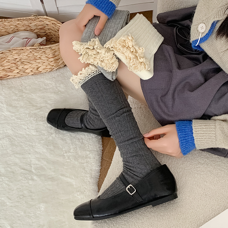 日系花边小腿堆堆袜女麻花纹理纯欲风秋冬季百搭学生少女及膝长袜