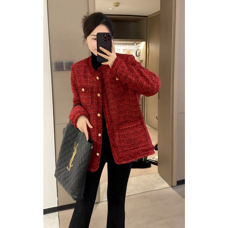 2718サイズ女装減齢名媛小香風毛ですねコート太ったmmフランスの粗花ですねスーツコート冬服