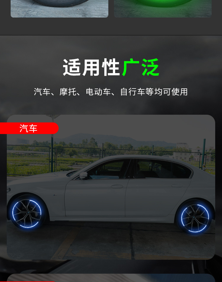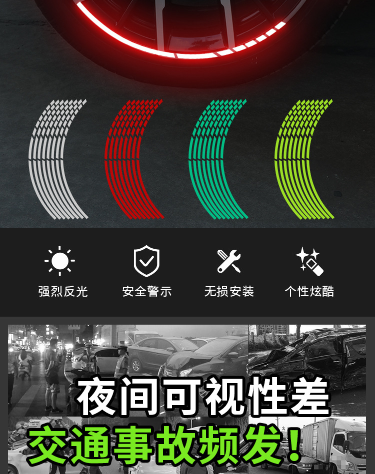 自動車のスチールリングは電気自動車のオートバイの夜光のハブを貼ってリムのステッカーの個性のハブを貼って反射の車を改造します。
