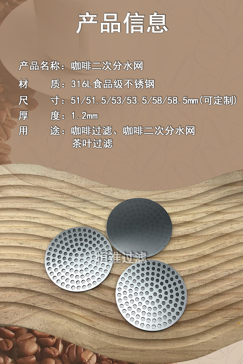 コーヒー二次分水ネット304ステンレス二重エッチングフィルターシート手押し式コーヒーマシンフィルター