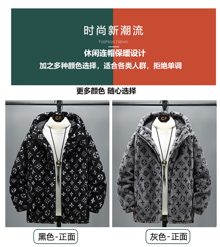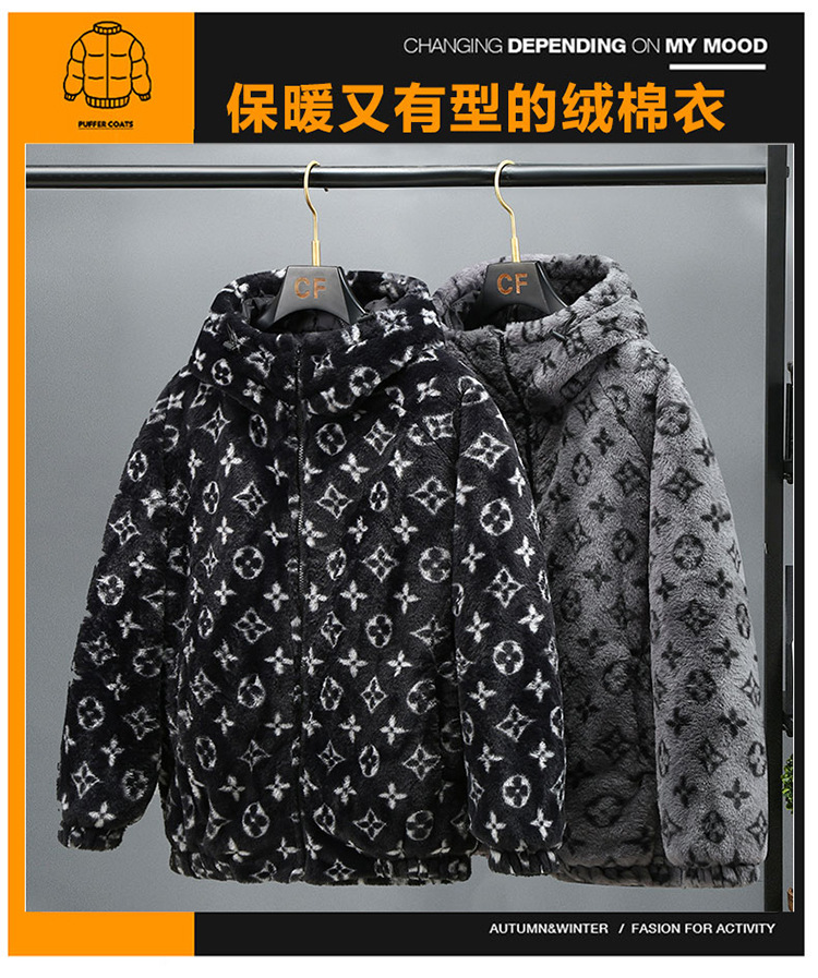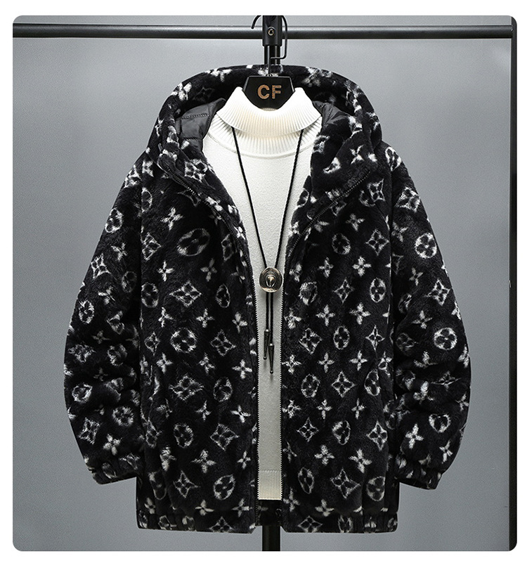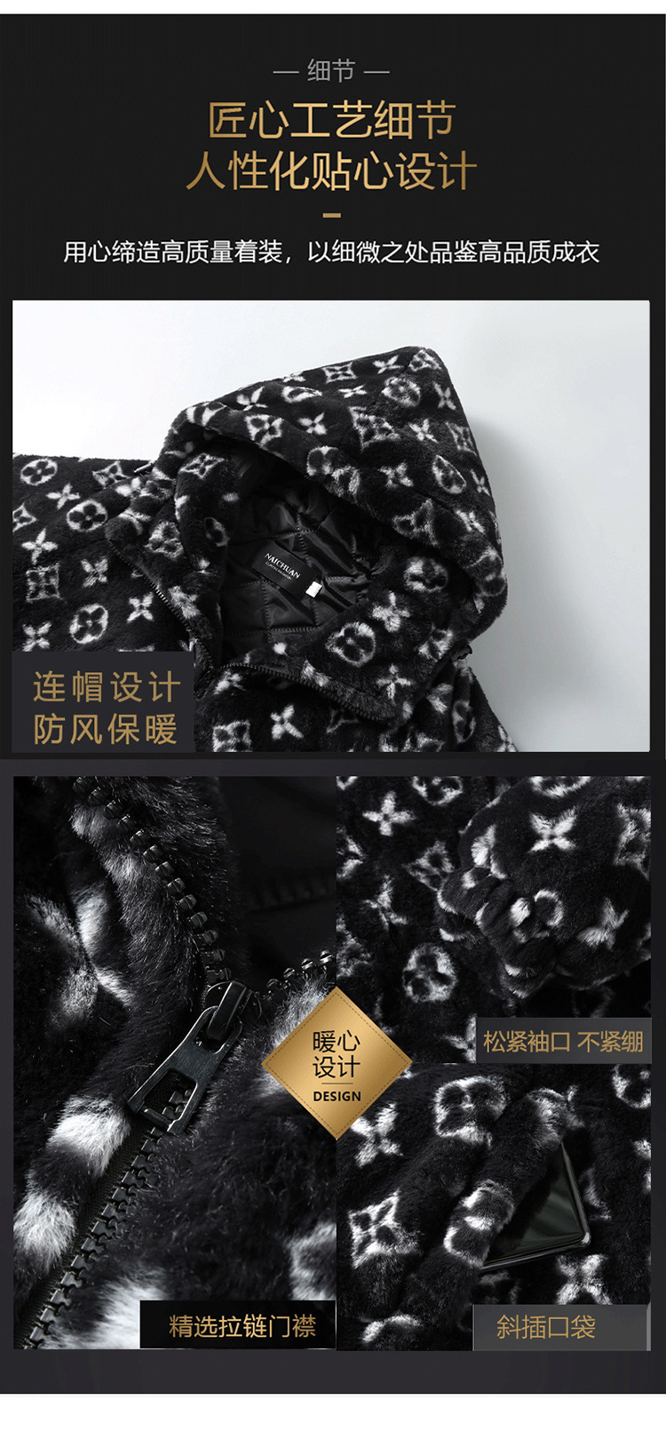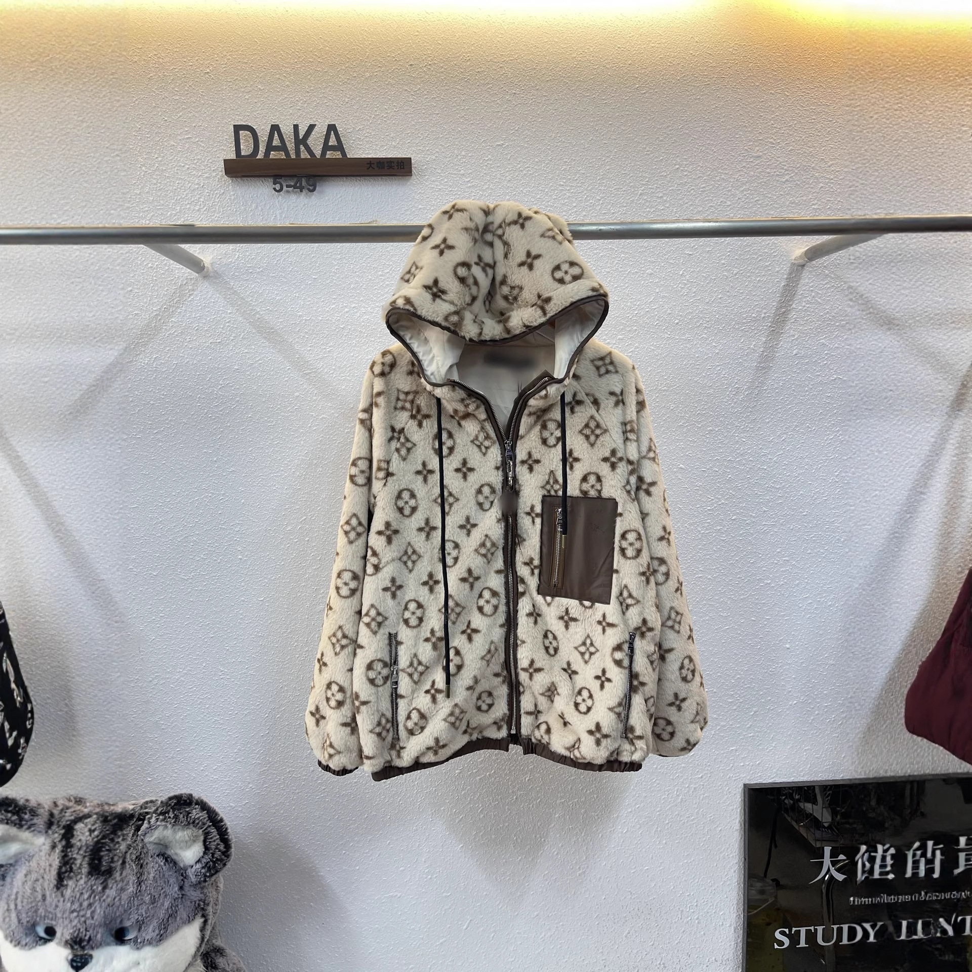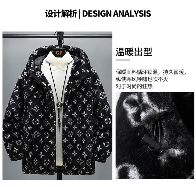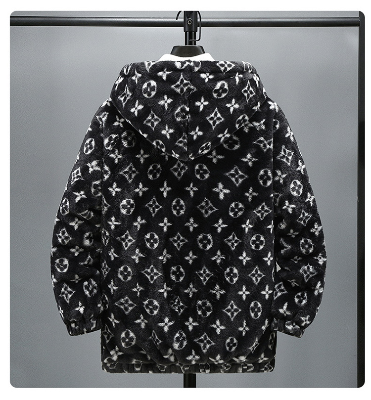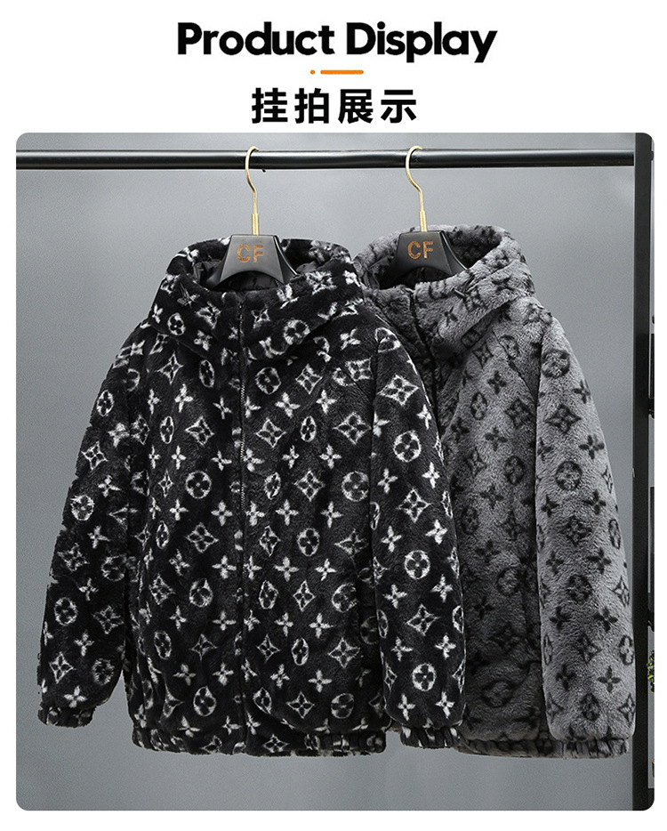 L25秋冬新款复古老花满印毛茸茸连帽保暖时尚百搭外套