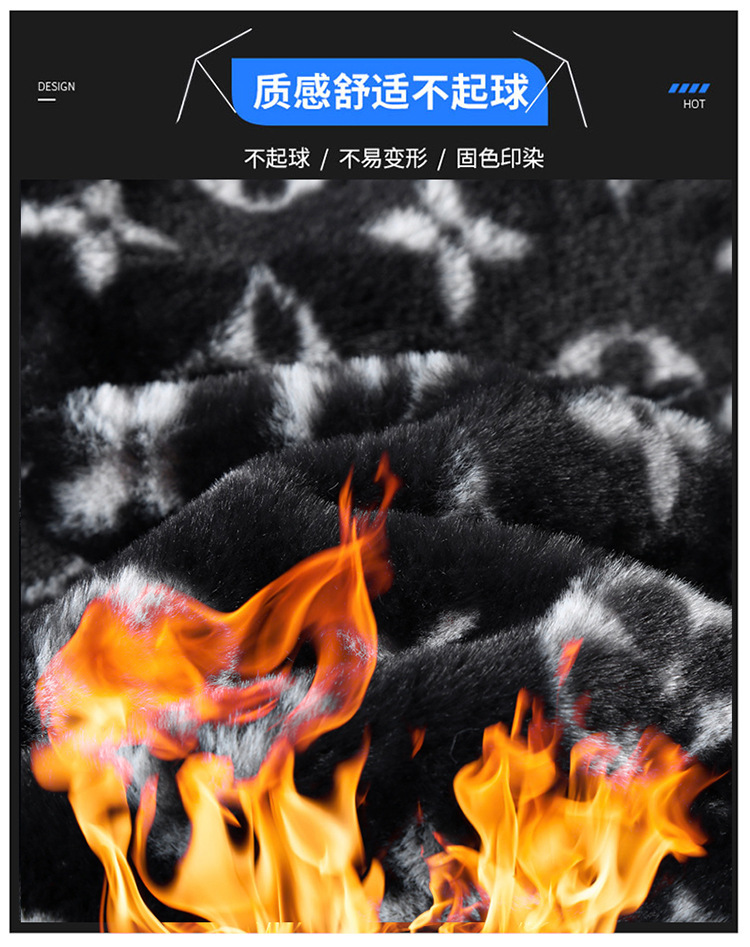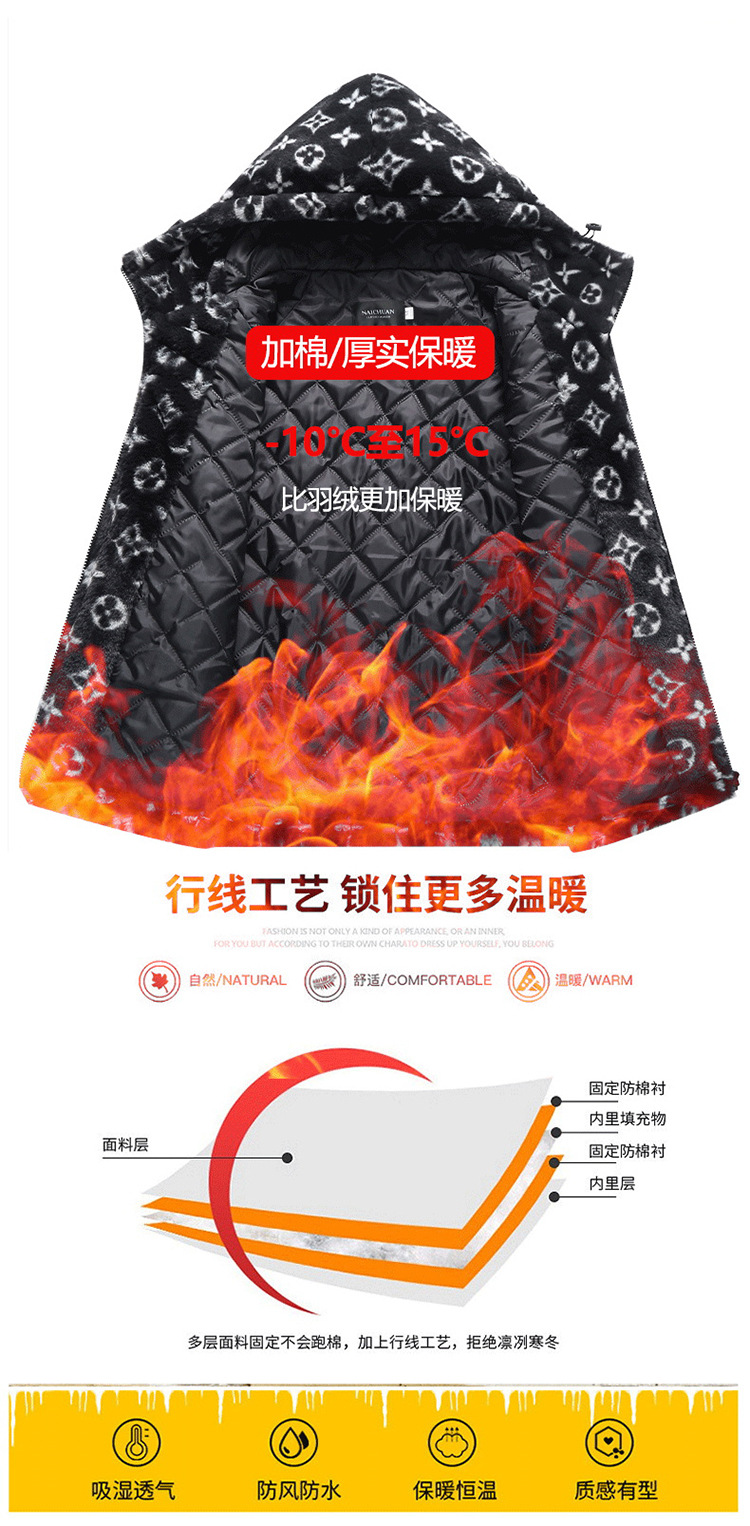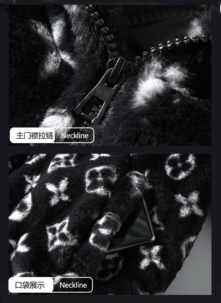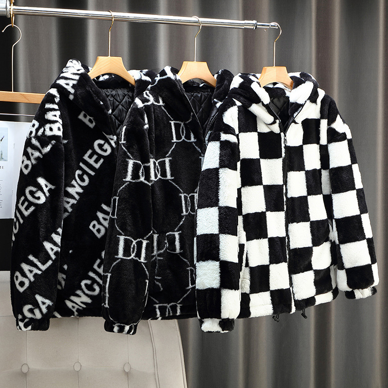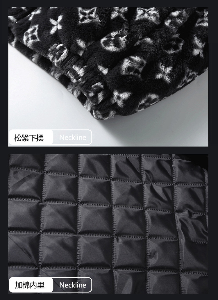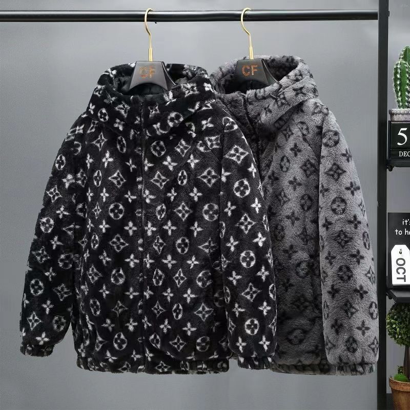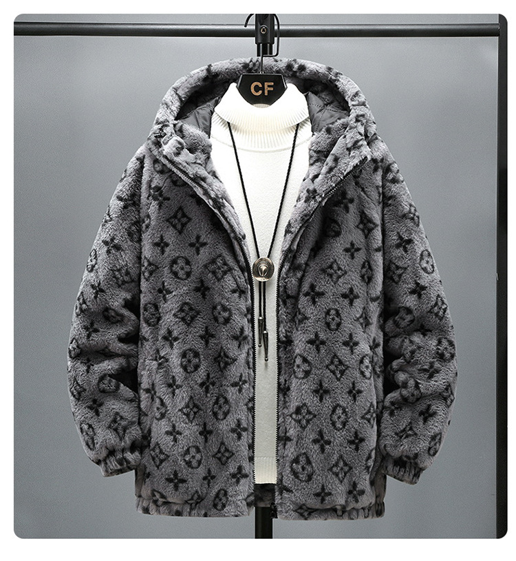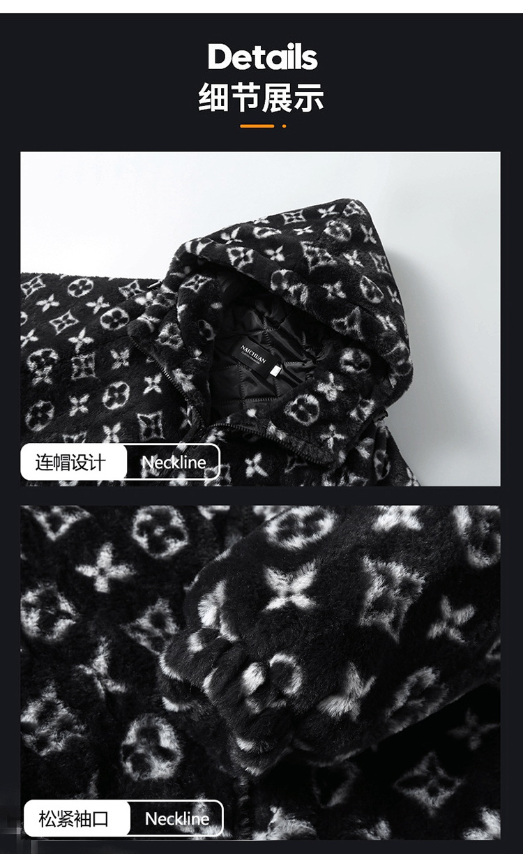 L25秋冬新款复古老花满印毛茸茸连帽保暖时尚百搭外套
