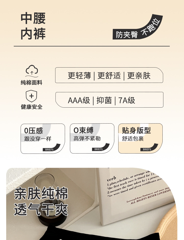 10A 抗菌拡張股純綿下着女性のクラス A ベビー綿快適な綿ミッドウエストシームレス女の子ブリーフ