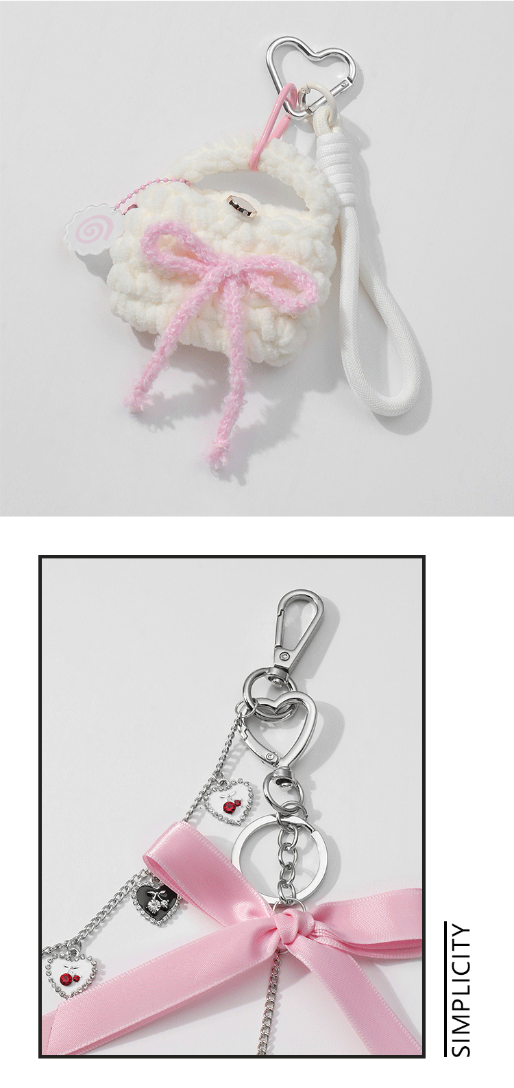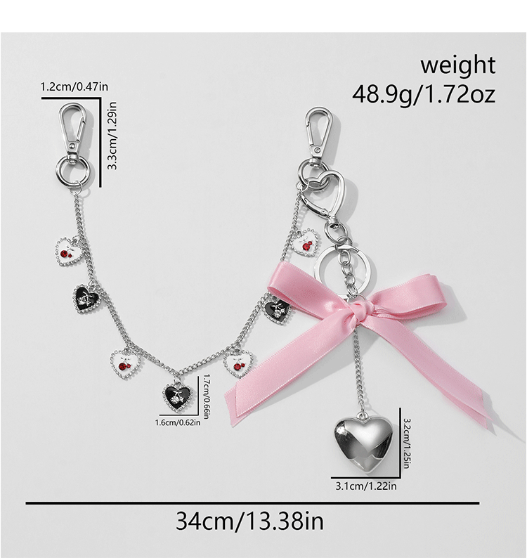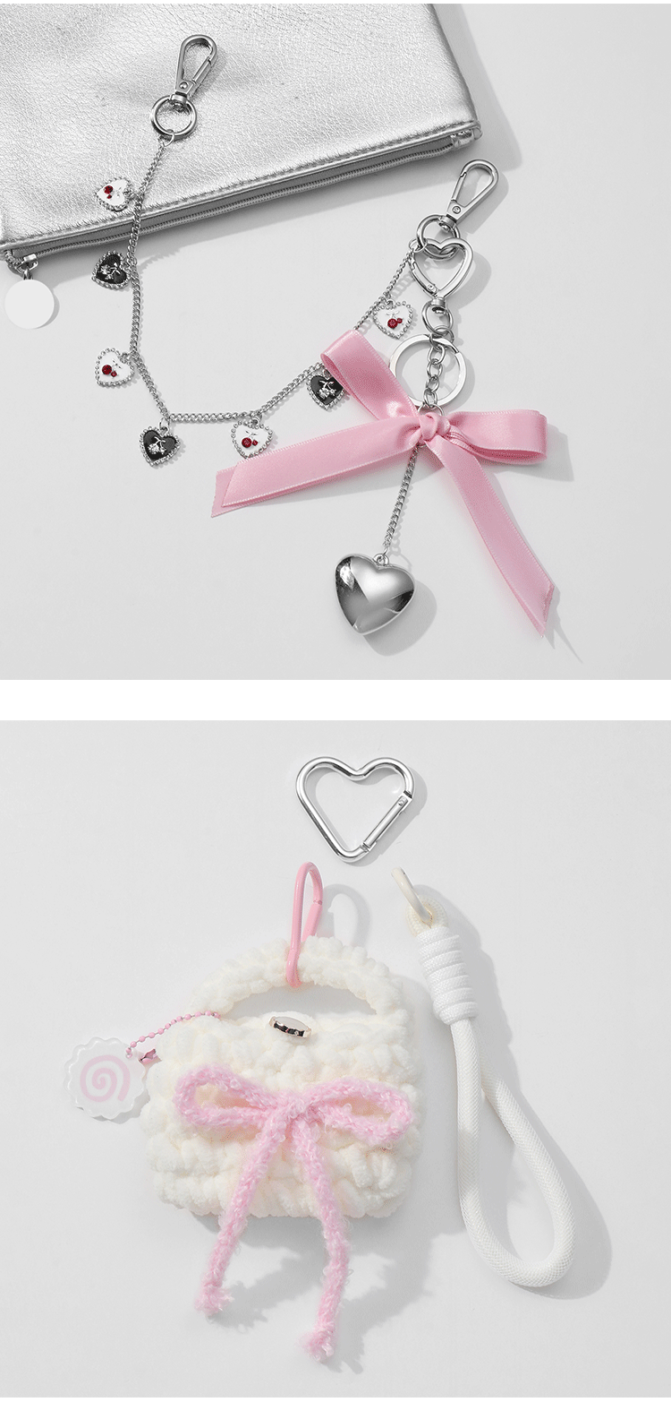 白い小さなリボンキーホルダー 1 個,シルバーチェーンリボンラブバッグペンダント1個