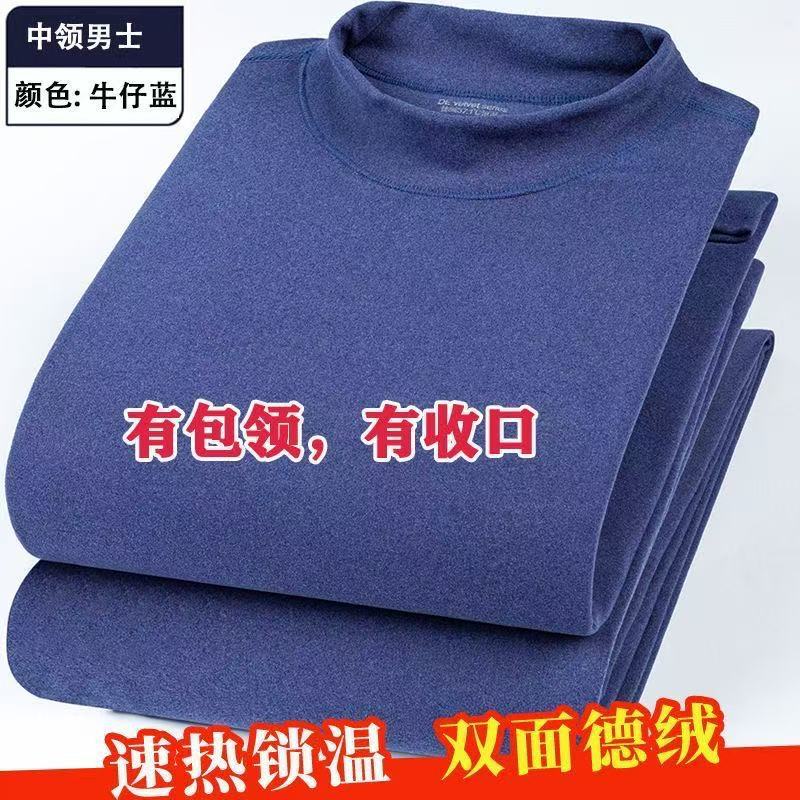 高弹德绒打底衫单件防寒男士女士冬季秋衣秋裤中老年中领保暖内衣
