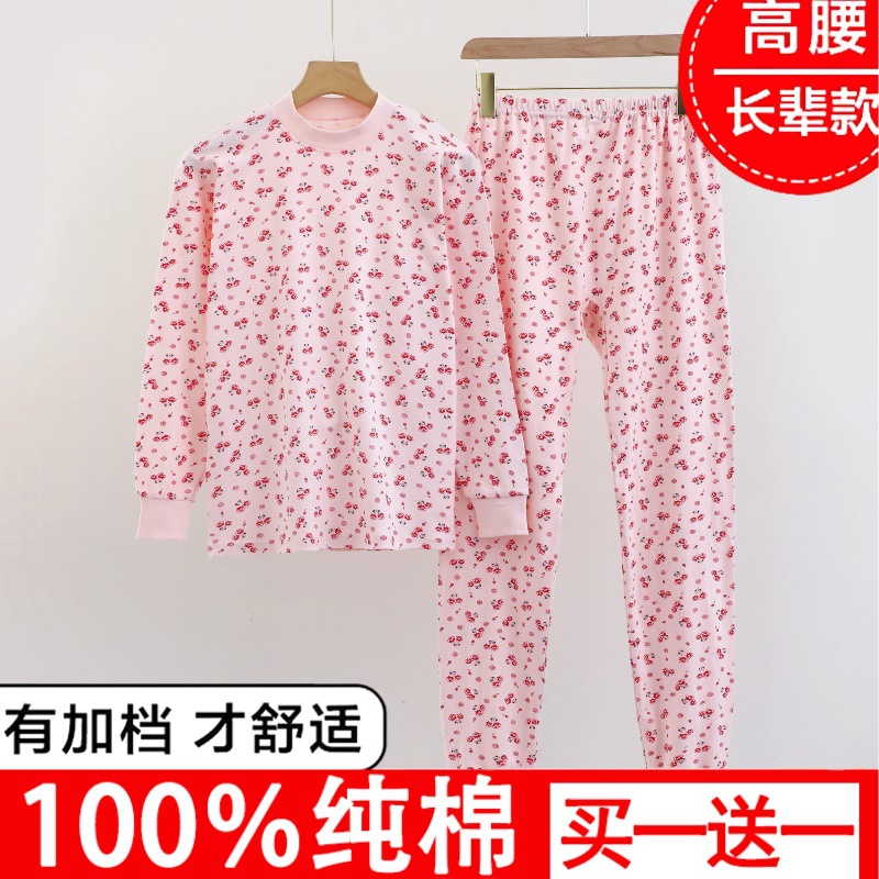 老年人秋衣秋裤女士保暖内衣套装中高领全棉老人棉毛衫老太太秋衣