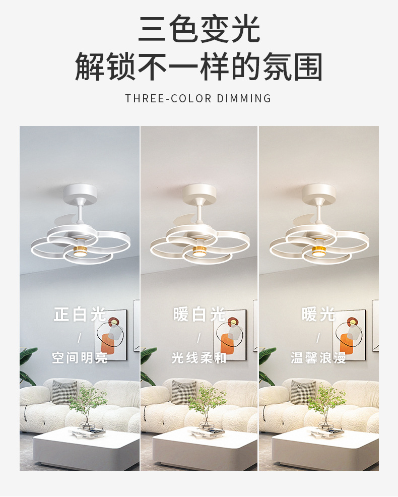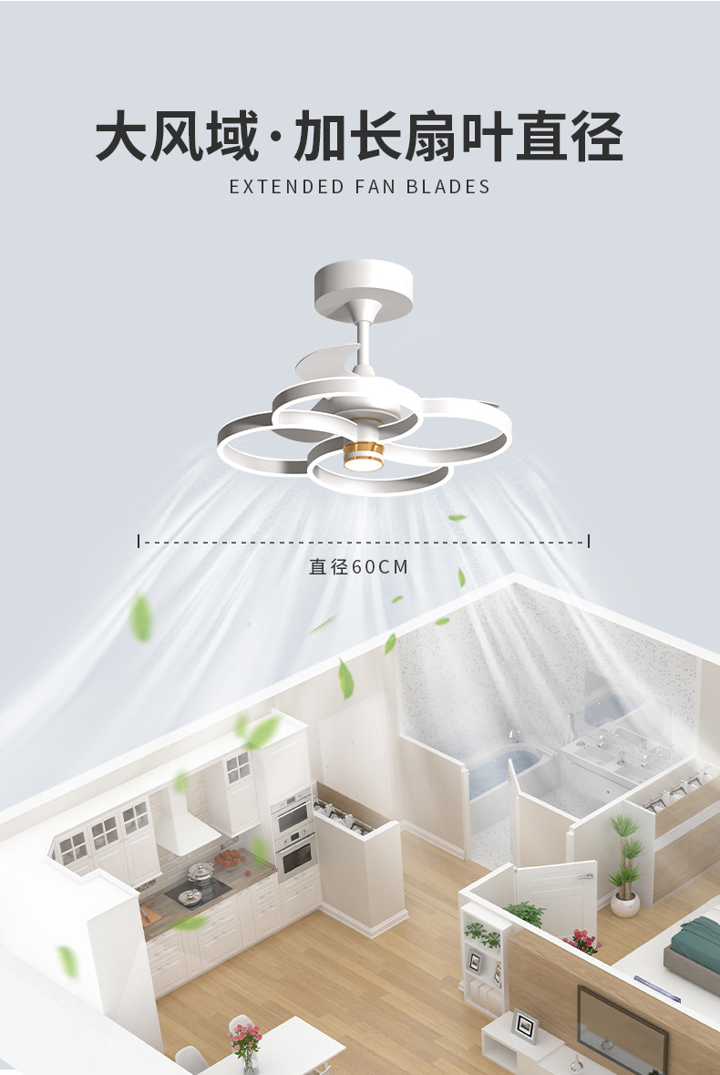 シンプルで現代的なLED家庭用ファンランプbluetooth語静音レストラン吊り扇ランプ2024年新型見えないシャンデリア