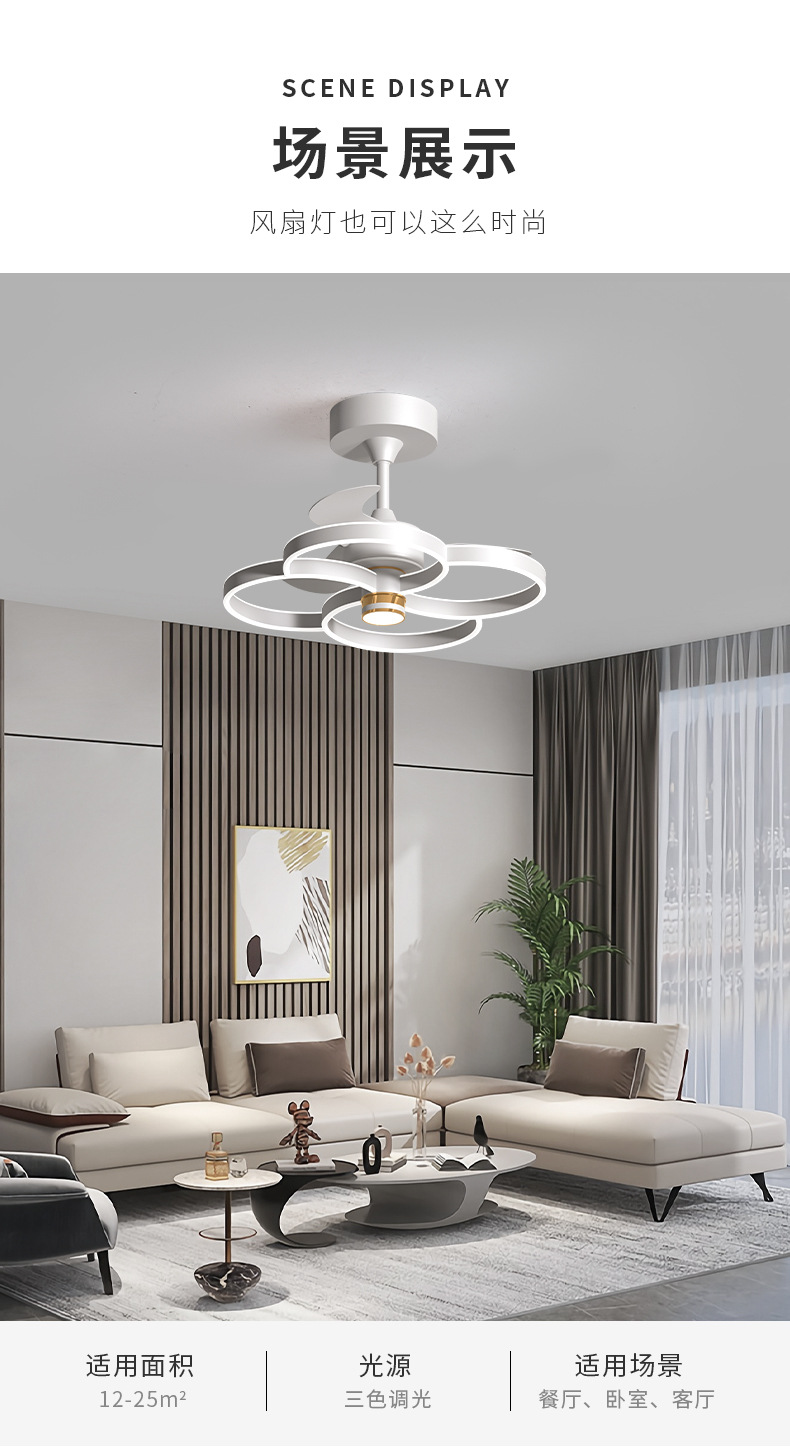 レストランファンランプモダン北欧 2025 新しいリビングルームとベッドルーム統合ファンシャンデリア広東中山ランプ