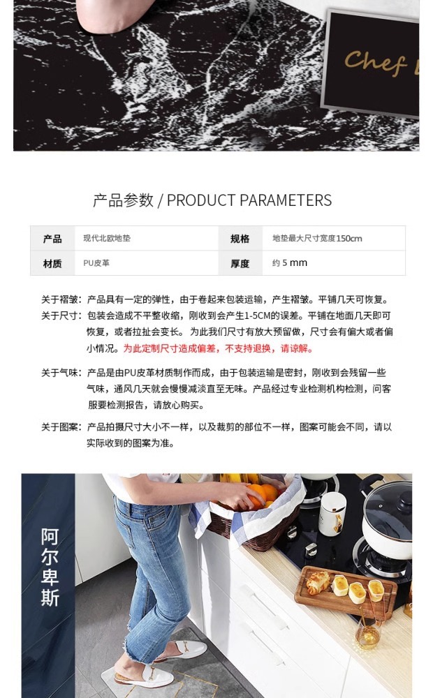 クロスボーダー長尺pu皮面キッチンマット入戸玄関マット家庭用キッチン防水防油カーペット