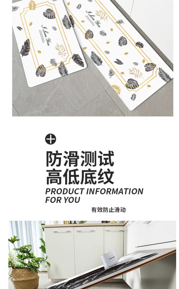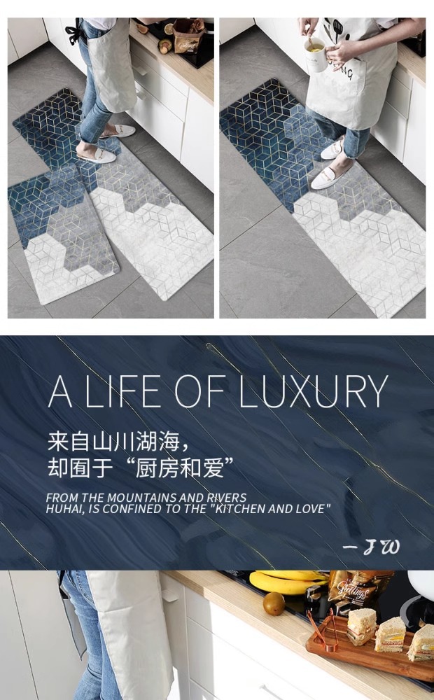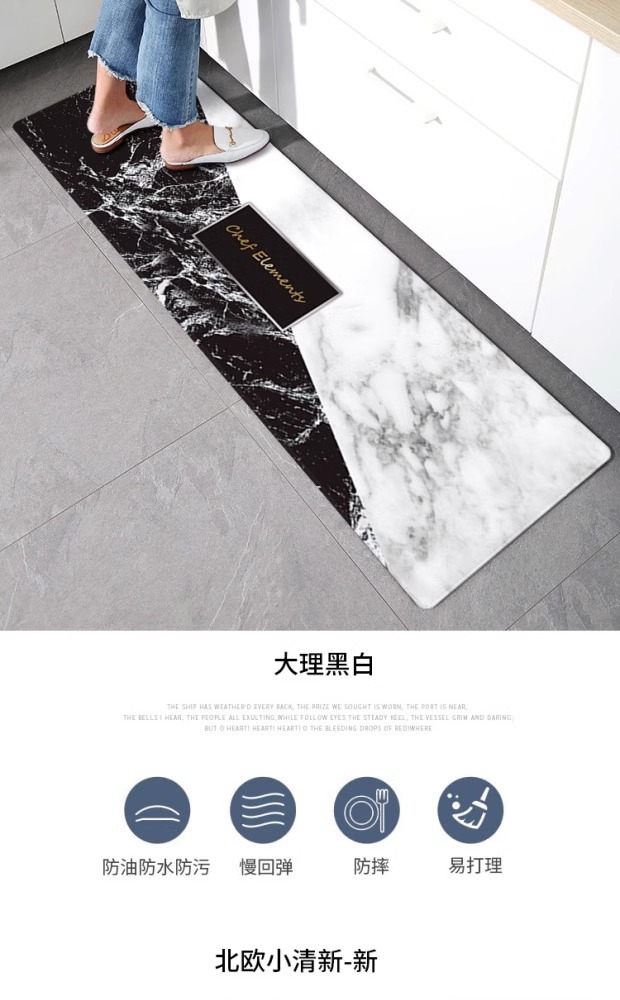 クロスボーダーPVCキッチンマット 厚手 長尺 レザー 防水足元マット 滑り止めマット 家庭用 防油 汚れ防止 洗えるマット