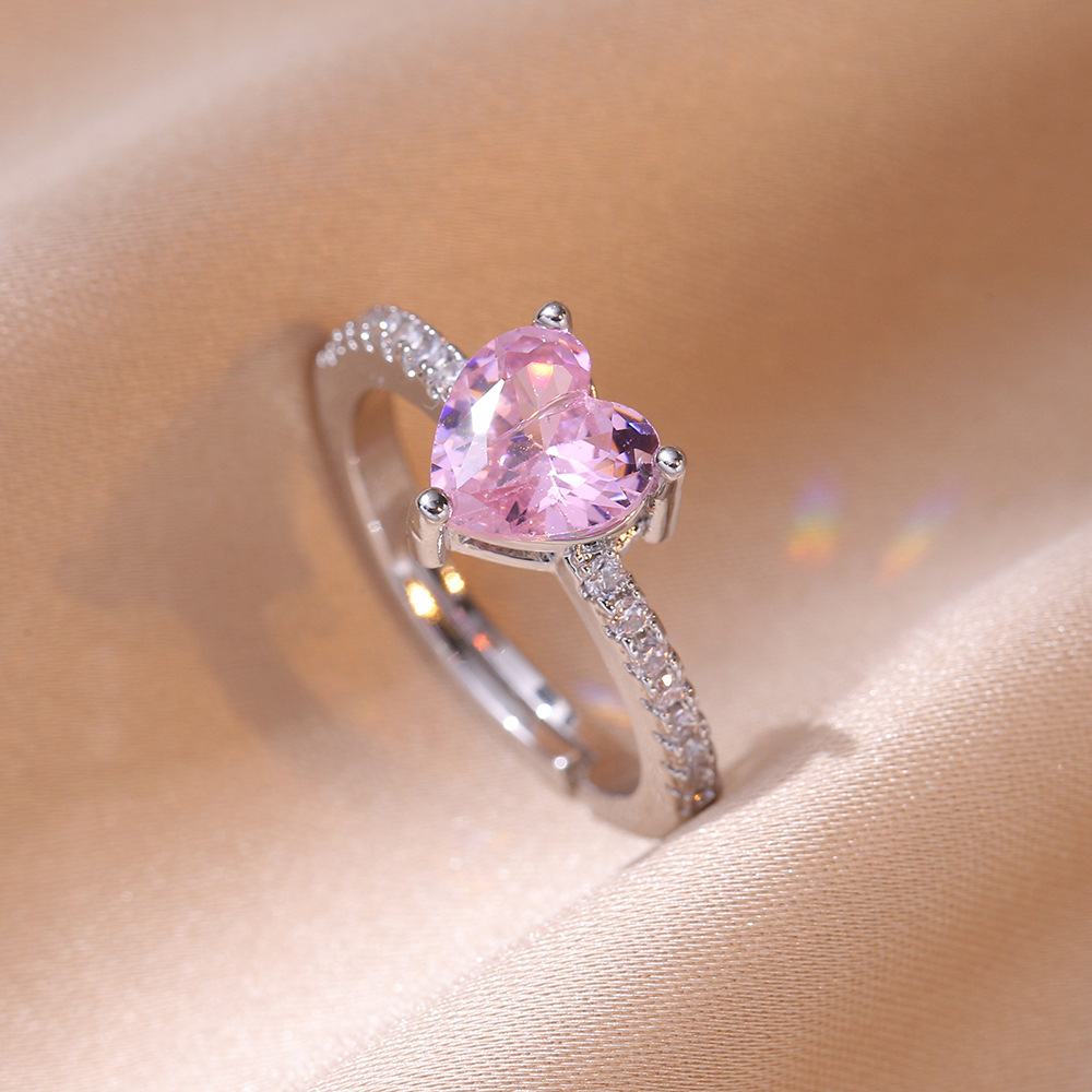 指輪の女性の日韓風の愛のジルコンの開口の指輪の甘い大衆の設計の食指の指輪のネットの赤い色は指を調節することができます。