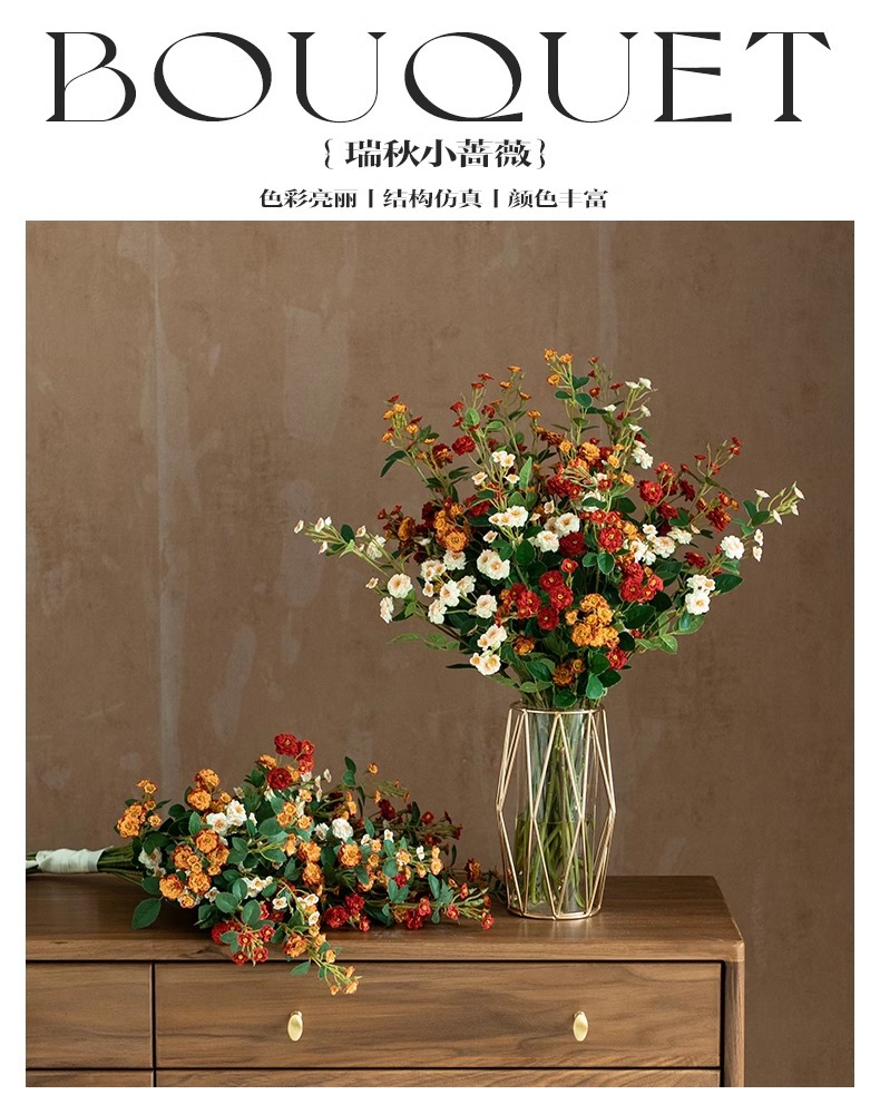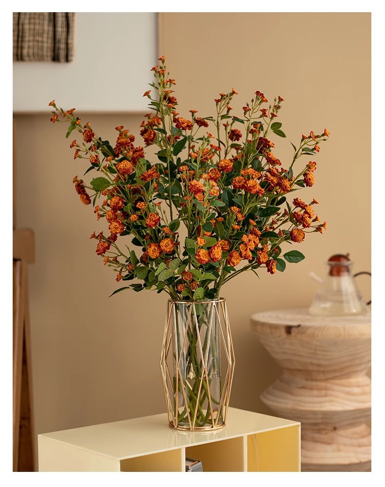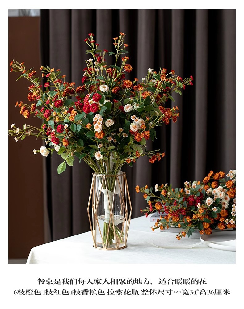 模造花5頭焦辺薔薇復古絹花家庭結婚祝い装飾造花ドライフラワー花束高級感配置