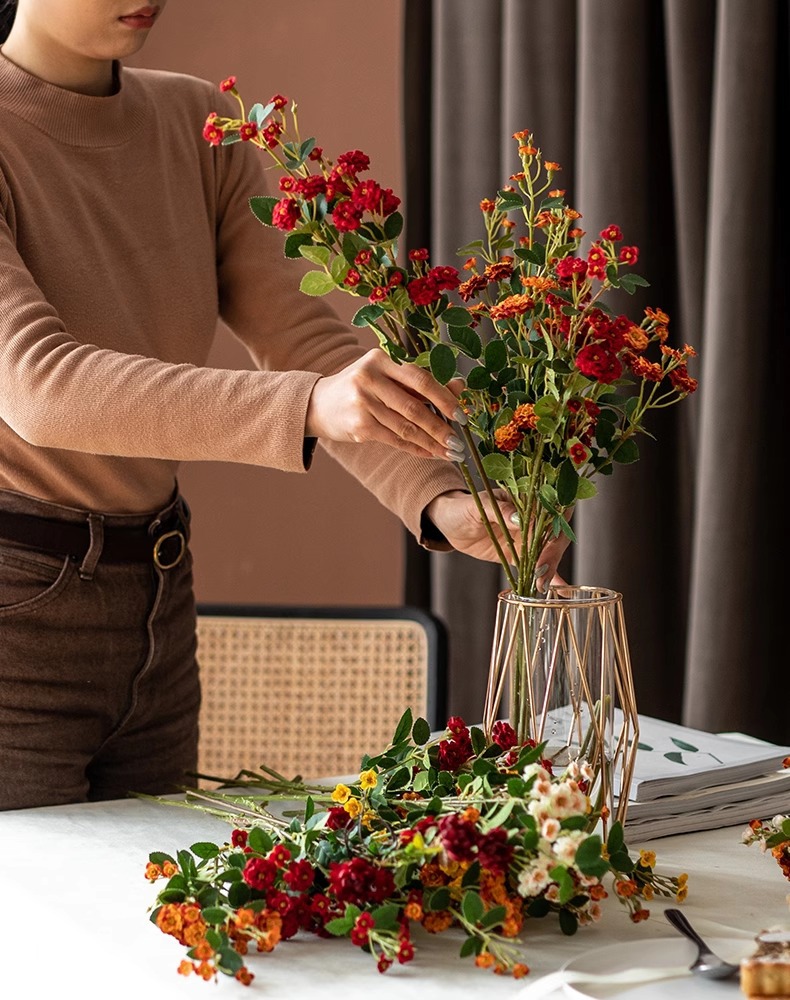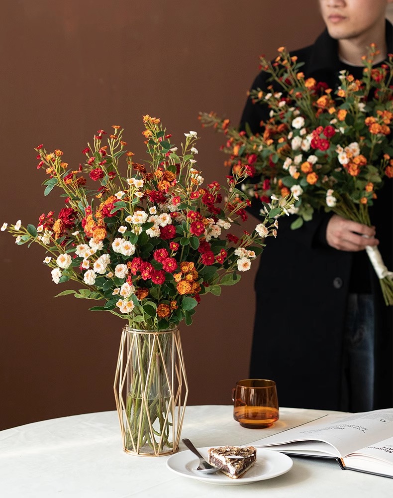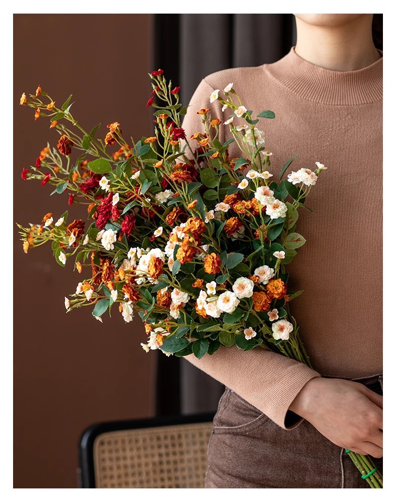 野山茶花模造花造花飾り置物ホームリビングテーブルドライ花ブーケ高級感撮影置物