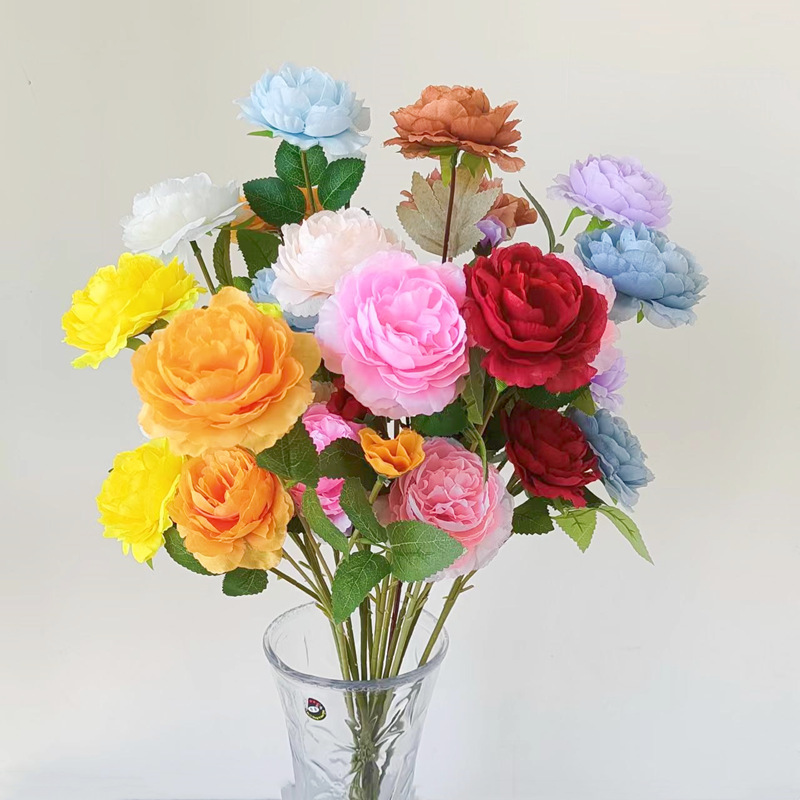 メーカーの卸売りヨーロッパ式の3頭の洋牡丹は花の家の結婚祝いの装飾の偽の花の3頭の洋牡丹をシミュレーションします。