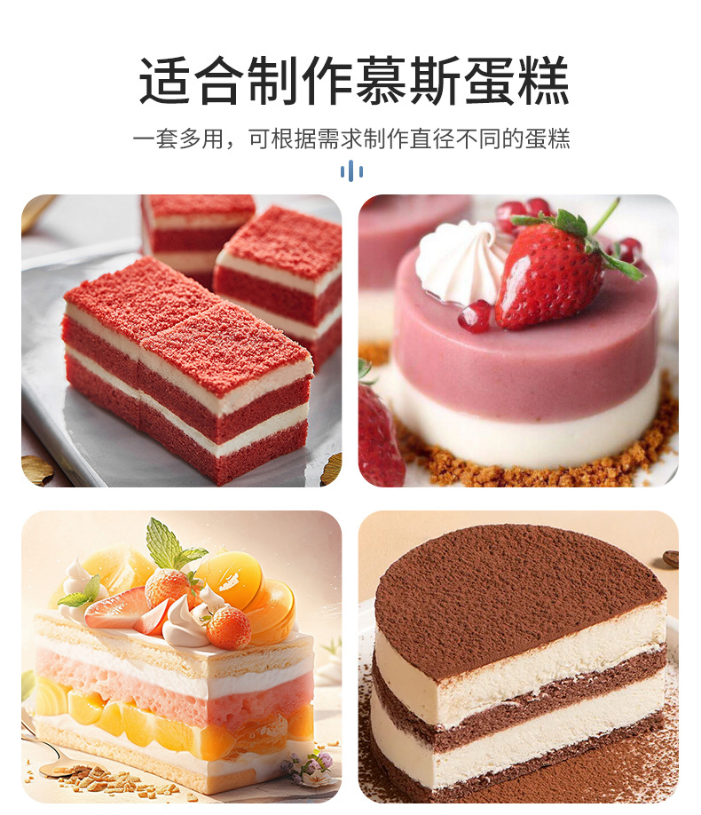 ステンレスムースリング11点セット、12点セットのケーキ金型はムースリングの伸縮ケーキリングを調節できる