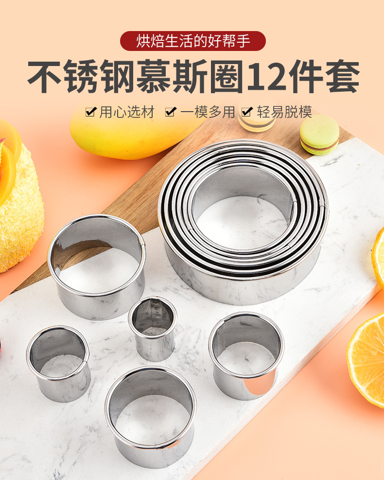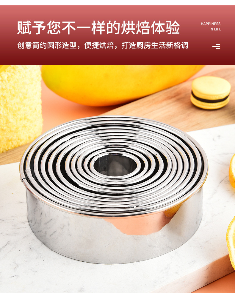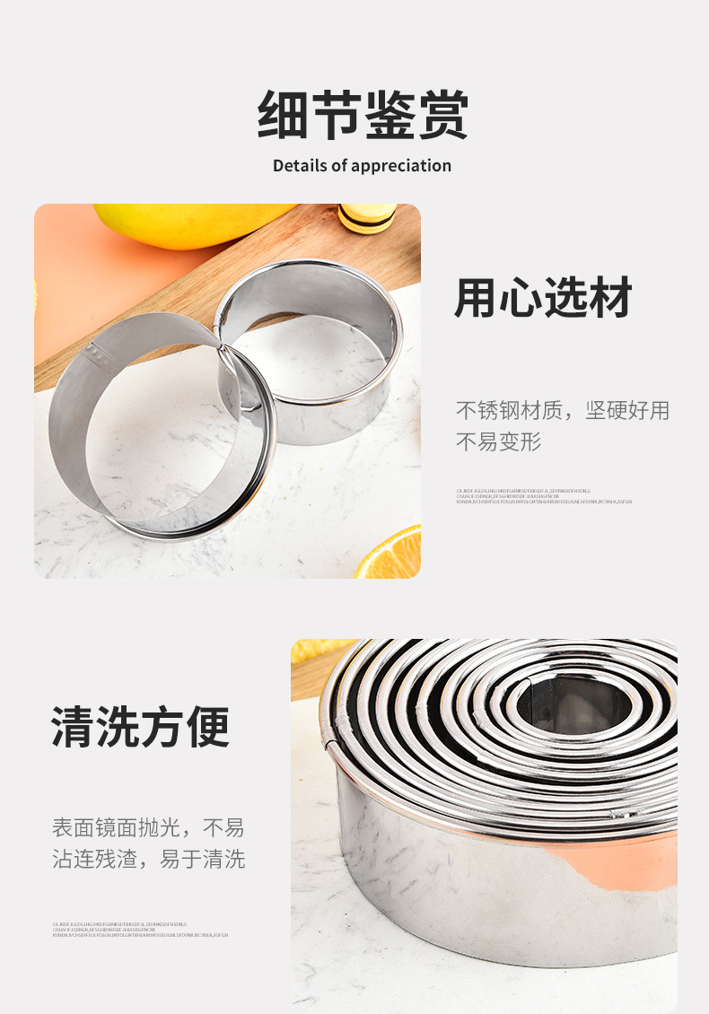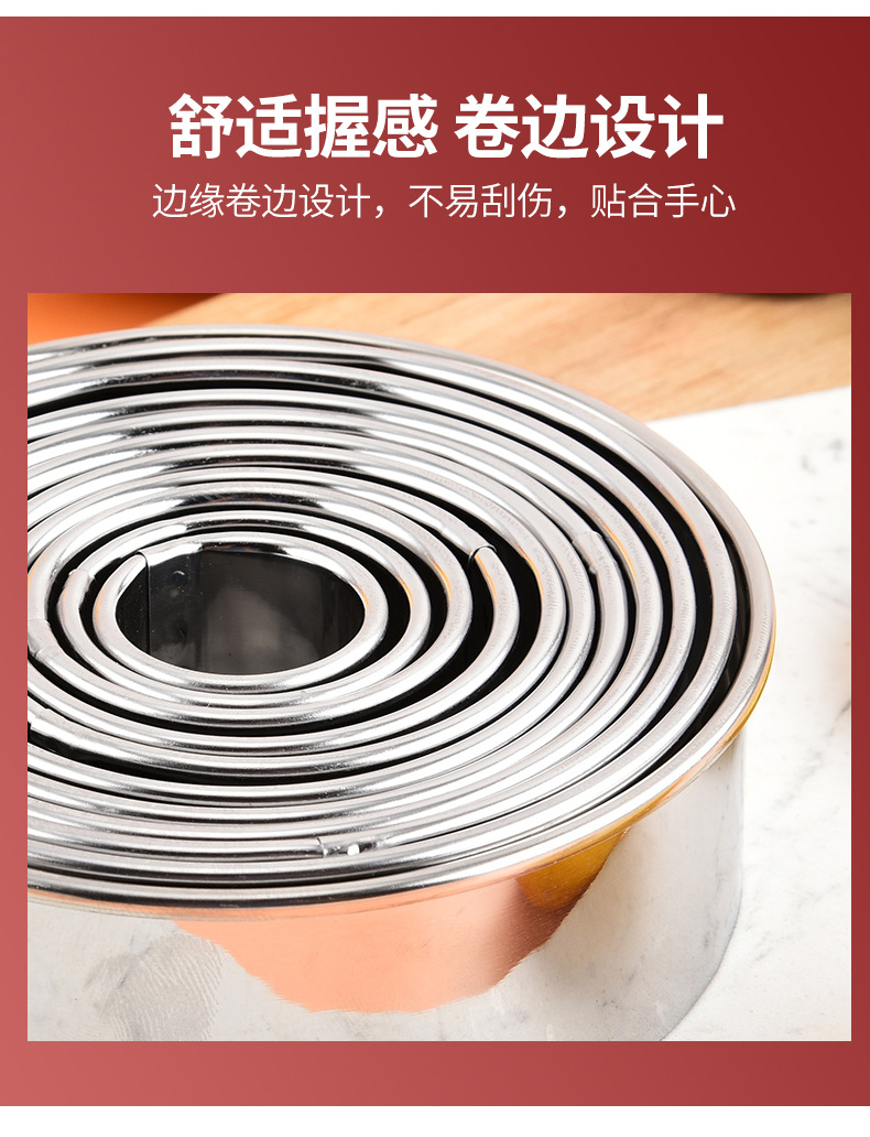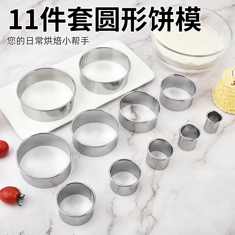 现货慕斯圈饼干模饺子皮切模不锈钢圆形饼干模圆形压模11/12件套