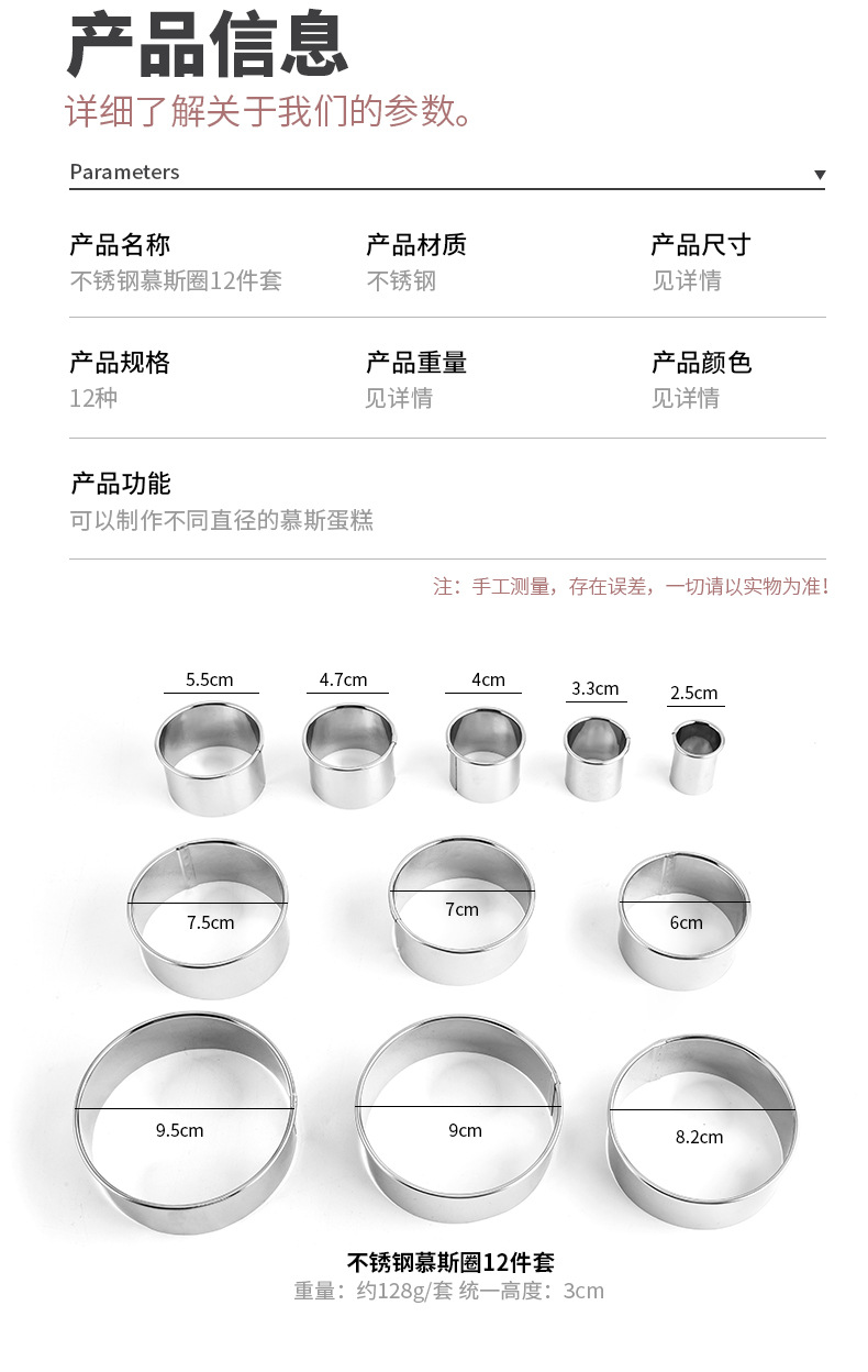 ステンレス製ムースリング11点セット12点セットケーキ型丸型切型餃子皮切ティラミス砥石