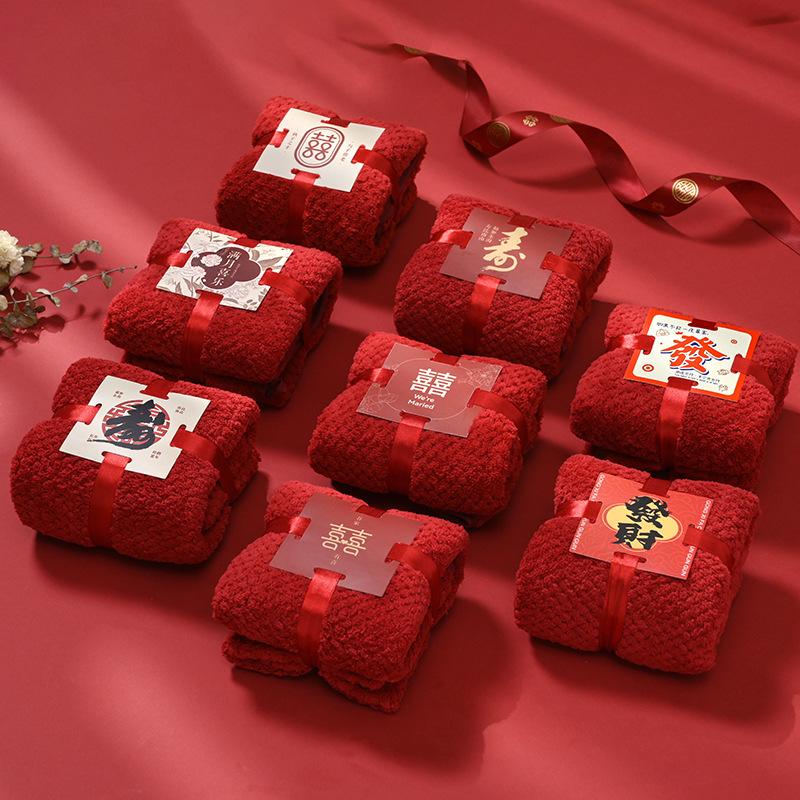 純綿のお土産タオル、結婚式のお祝いショップ、ブライズメイドのホリデー用品、大きな赤いウェディングタオル、お土産ギフト卸売