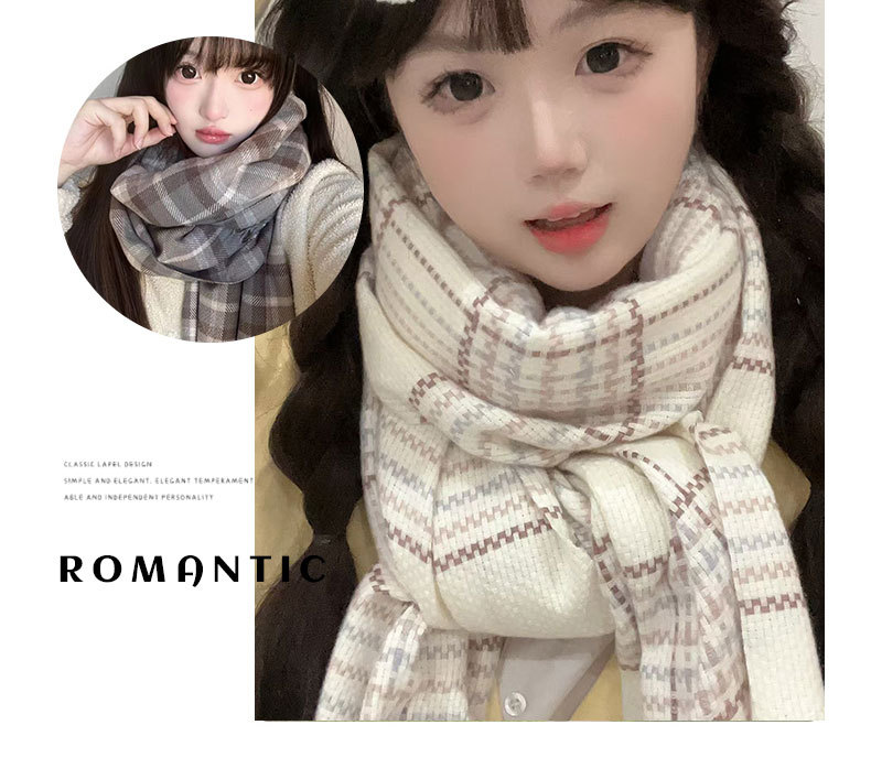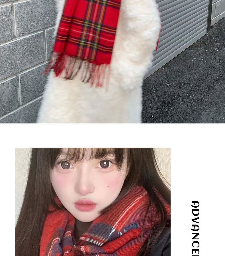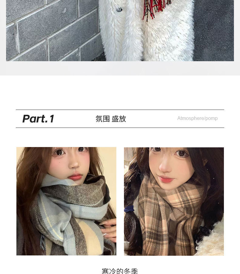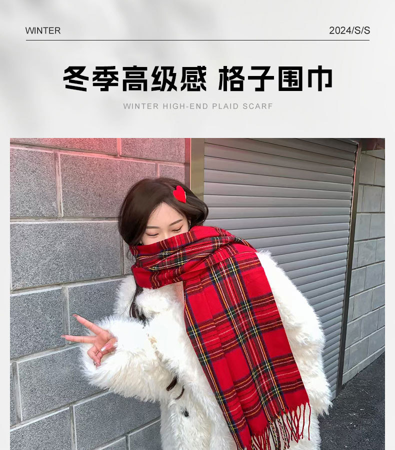 新款仿羊绒格子围巾女欧美韩版日系时尚秋冬加厚保暖流苏披肩围脖