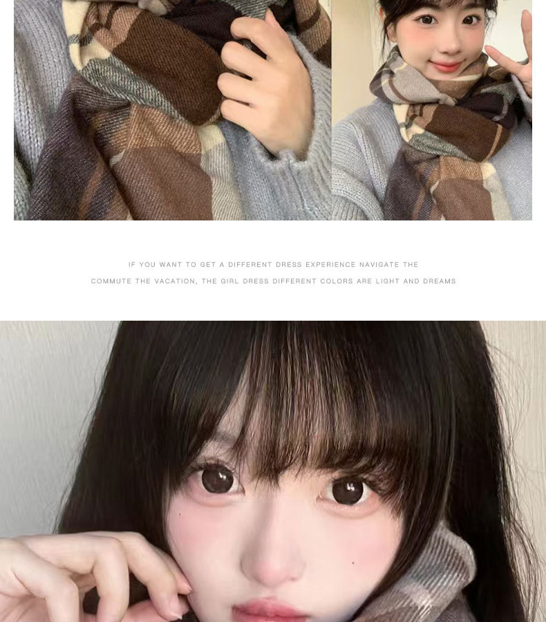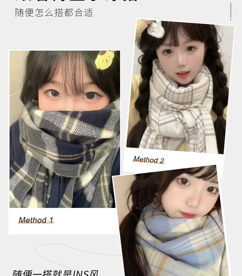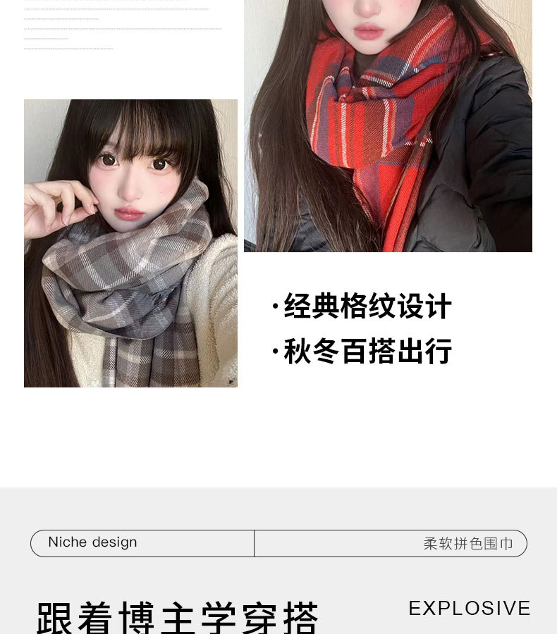抖音爆款2025新款百搭加厚格子围巾女披肩高级感冬季学生保暖围脖