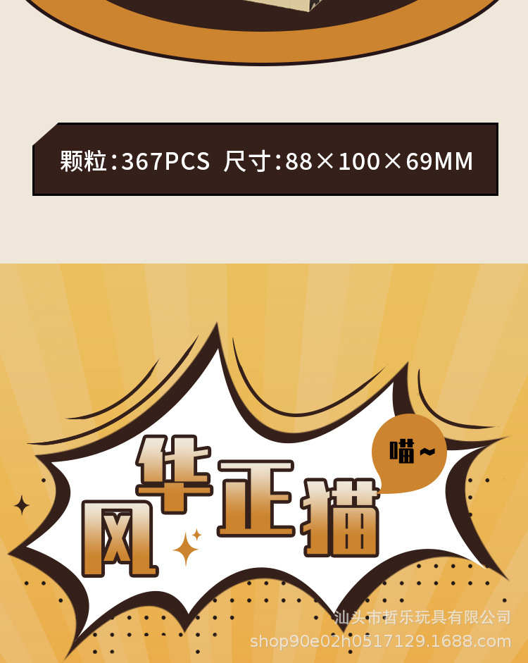 潮游速達箱三色橘猫益智は積み木のおもちゃの子供の小学生のお土産を飾って卸売りします。
