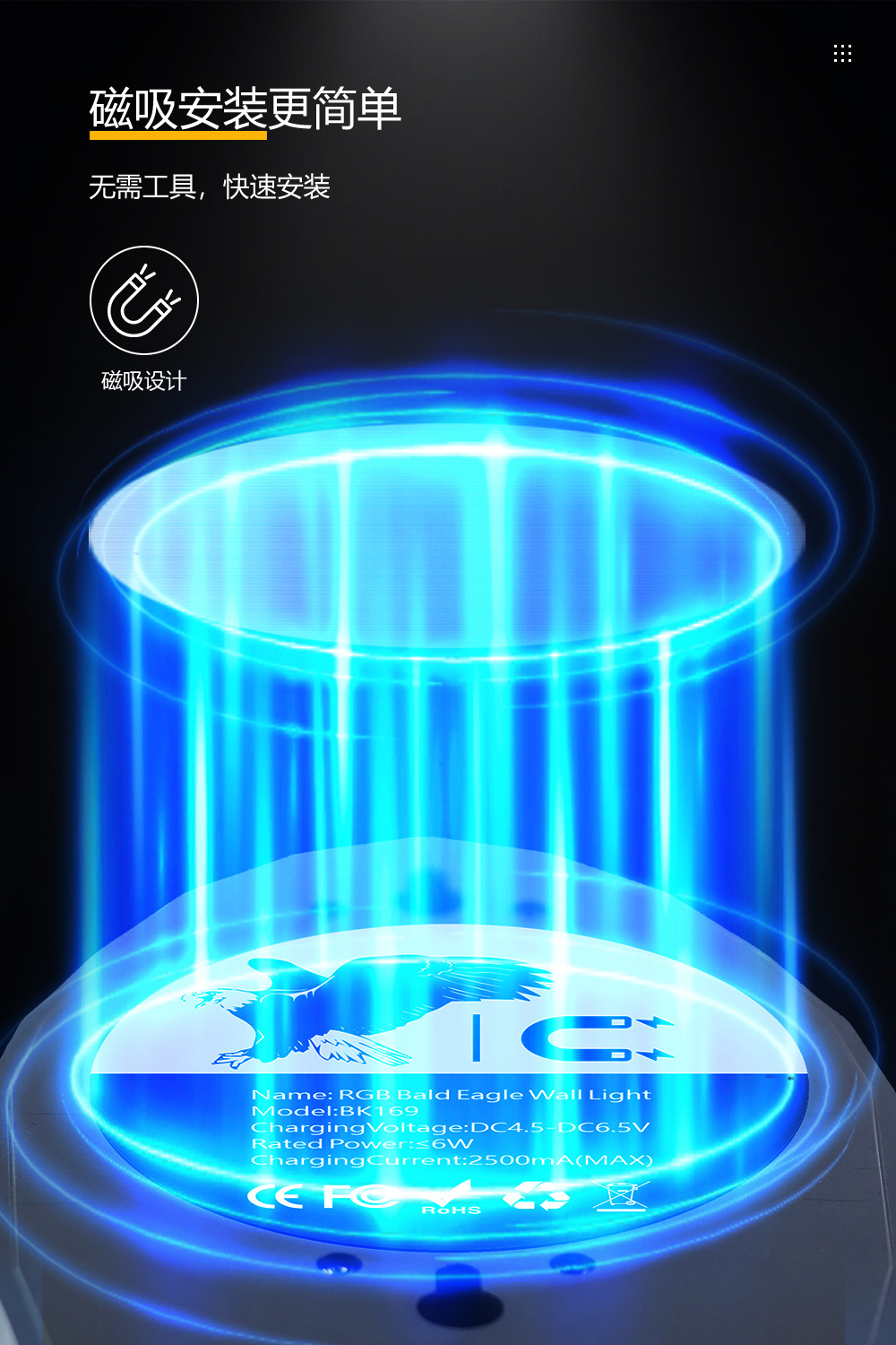 クロスボーダー新しいブラックイーグルウォールランプ壁雰囲気ライトパーティーホリデーギフト装飾モデル新しい磁気吸引