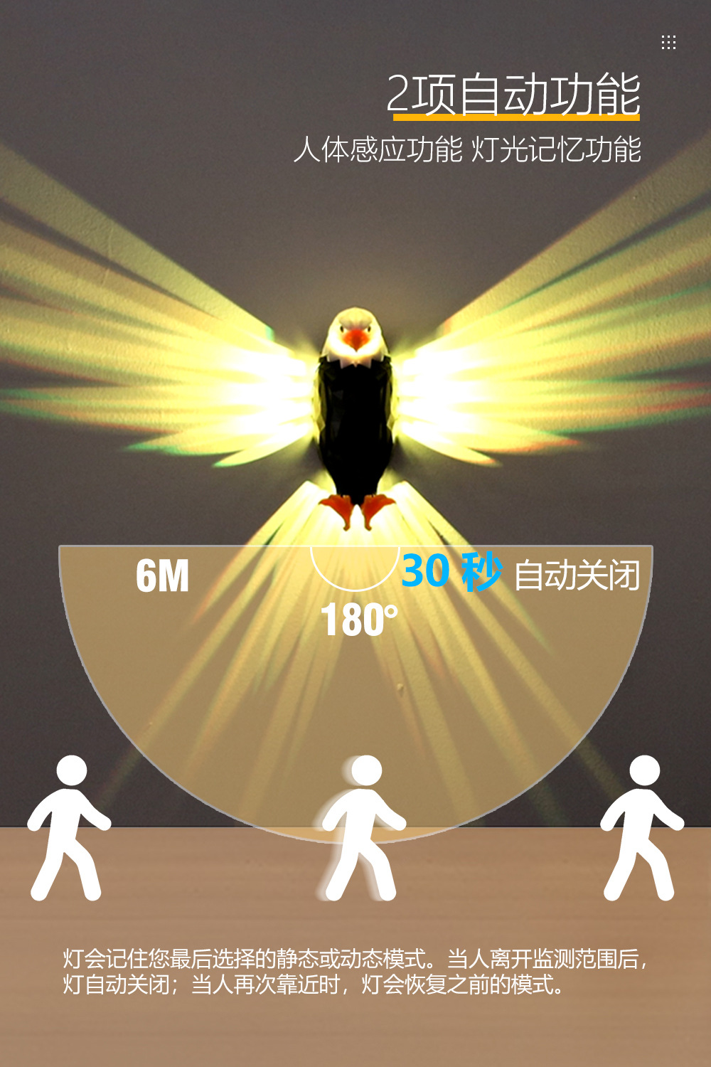 【クロスボーダー専用】新型鷹壁灯夜光翼主臥レストラン家庭用壁掛け投影灯壁