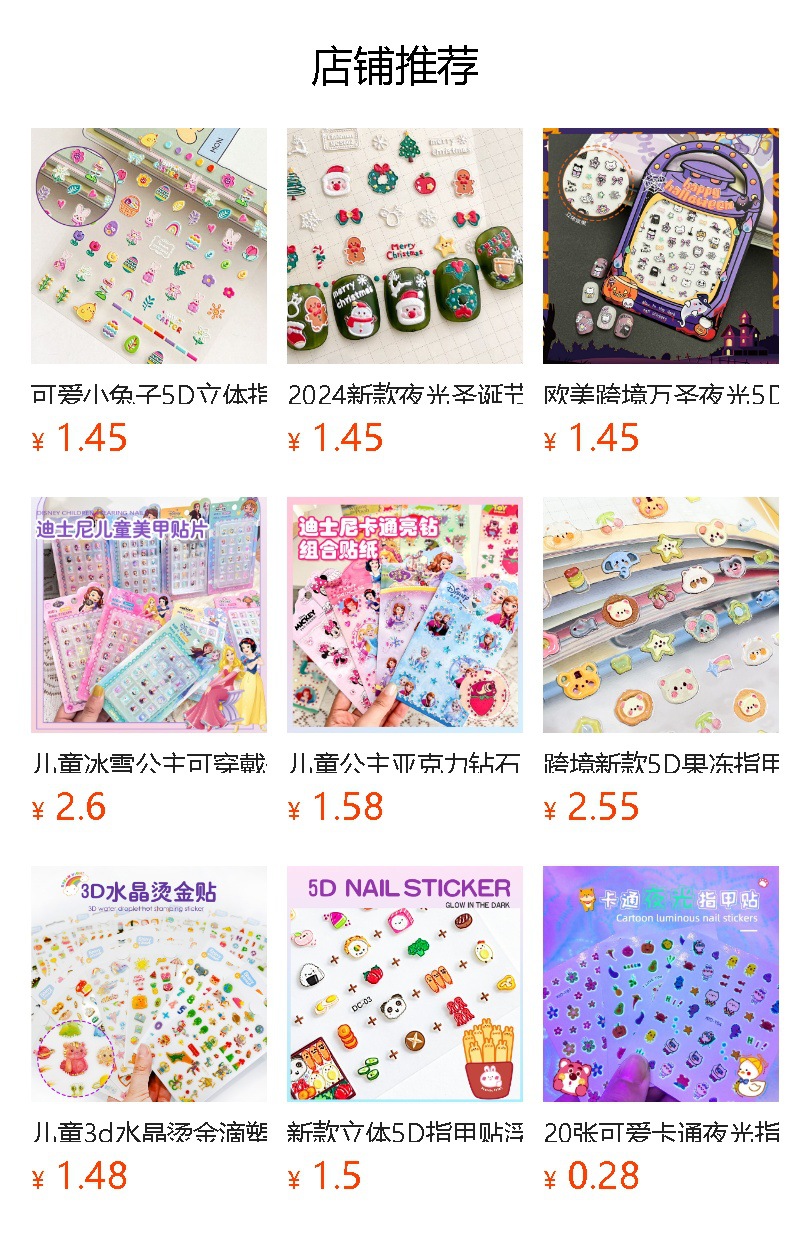 夜光5D子供爪ステッカー无味新品ステッカー女の子フレッシュネイルステッカー立体レリーフ蛍光ステッカー