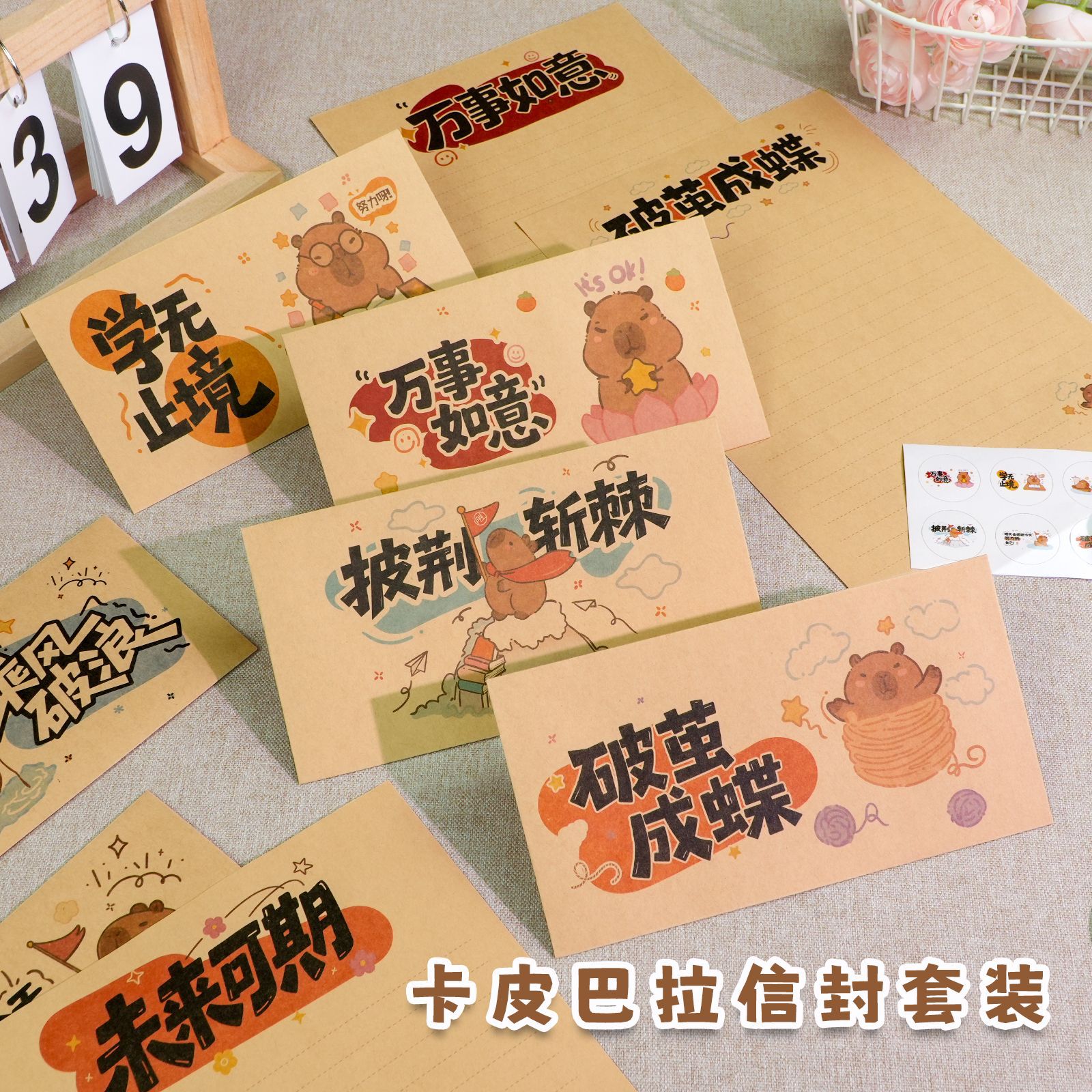 卡皮巴拉可爱牛皮信封动漫卡通套装信纸创意贺卡信笺生日祝福礼物