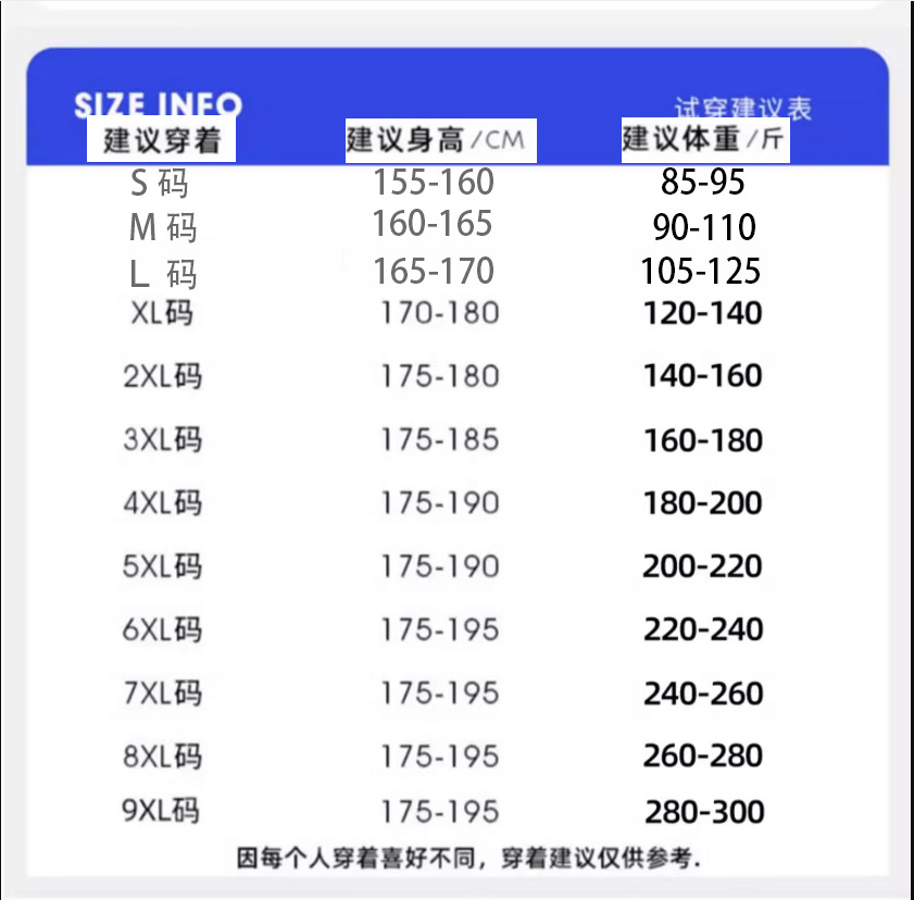 サイズ S,M,L,XL,2XL,3XL,4XL,5XL,6XL,7XL,8XL