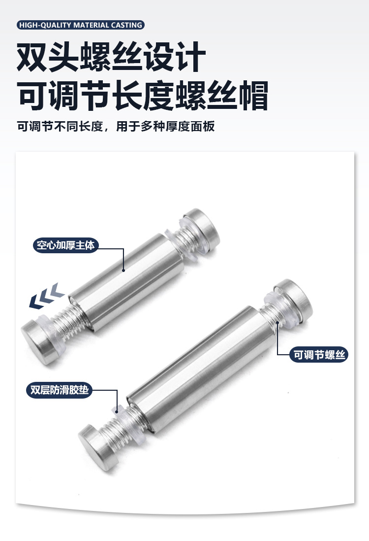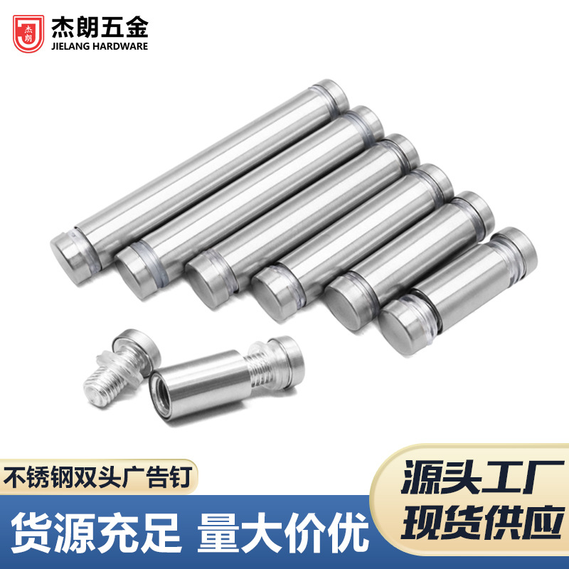 ステンレスダブルヘッド広告釘アクリル締め付けネジ看板支持柱2頭上下挟みガラス釘