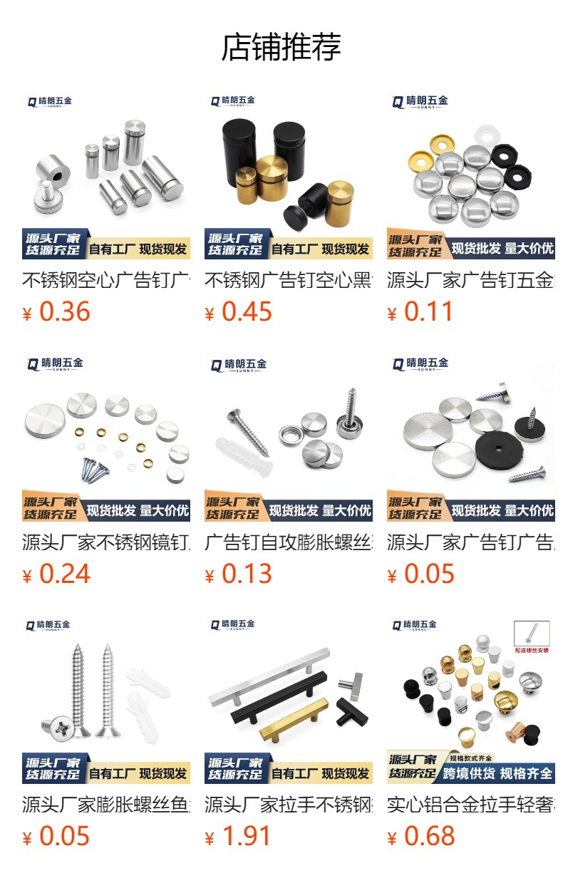 アクリルスタンド広告装飾釘 ステンレス広告ネジ ガラス装飾広告釘 メーカー卸売