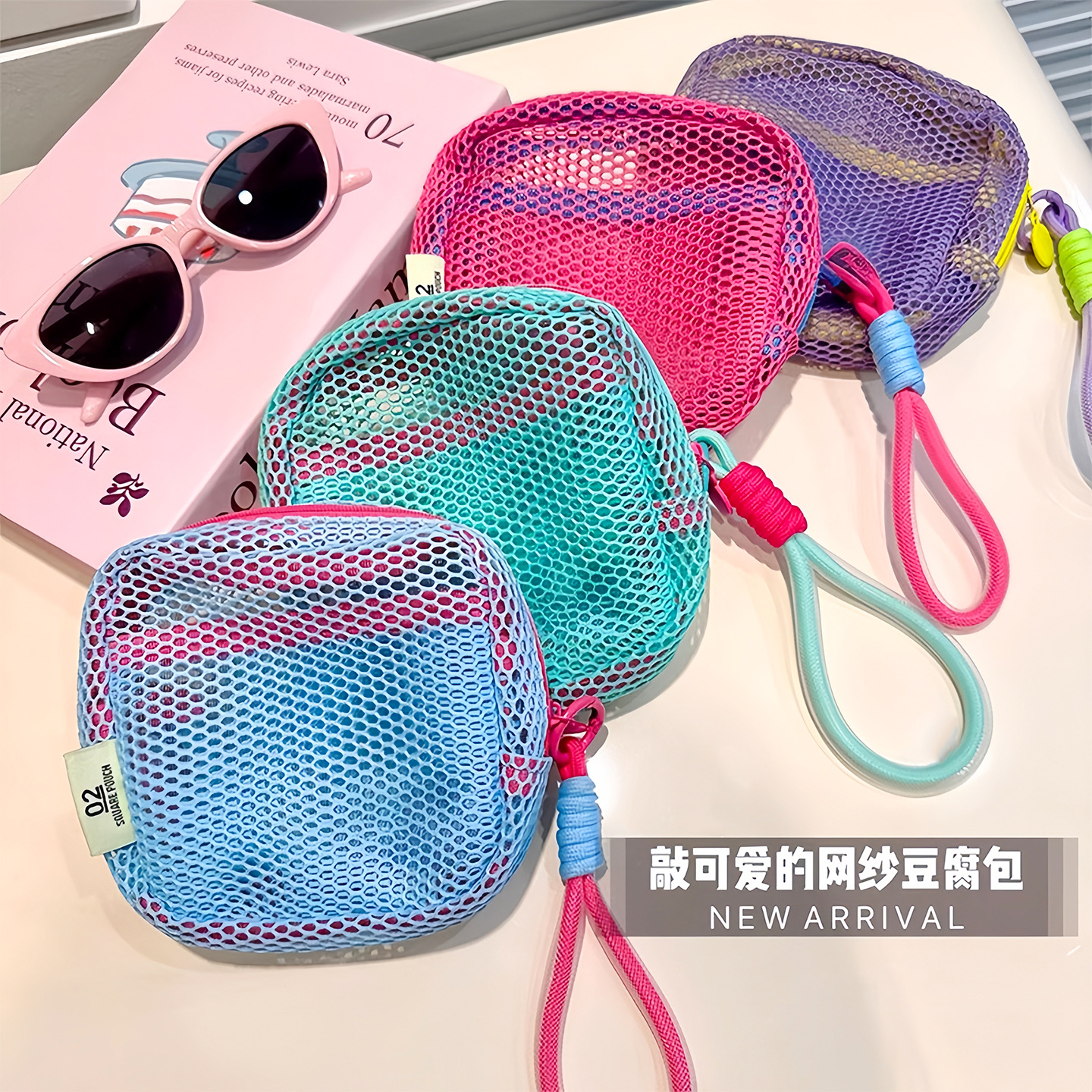 网格收纳包小号旅行便携式化妆包超轻口红随身化妆品收纳手提小包