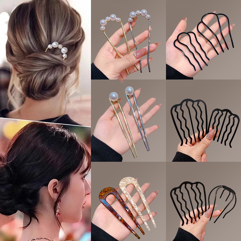 怠け者のヘアスタイリングツール、ボールヘッド、4本歯ヘアコーム、ヘアピン、逆ヘアピン、U字型ヘアピン、女性用ヘアアクセサリー