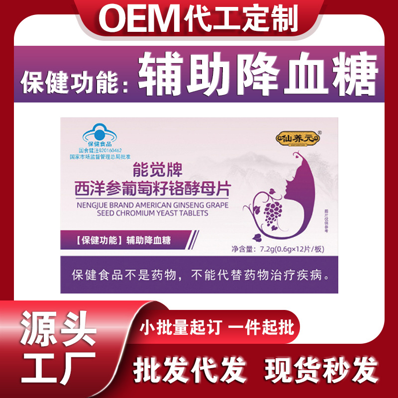 辅助降血糖能觉牌西洋参葡萄籽铬酵母片蓝帽保健品代加工定制贴牌