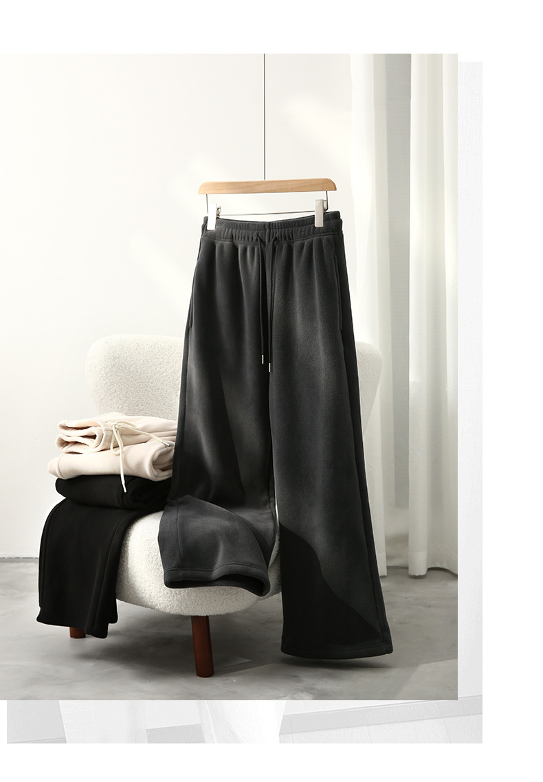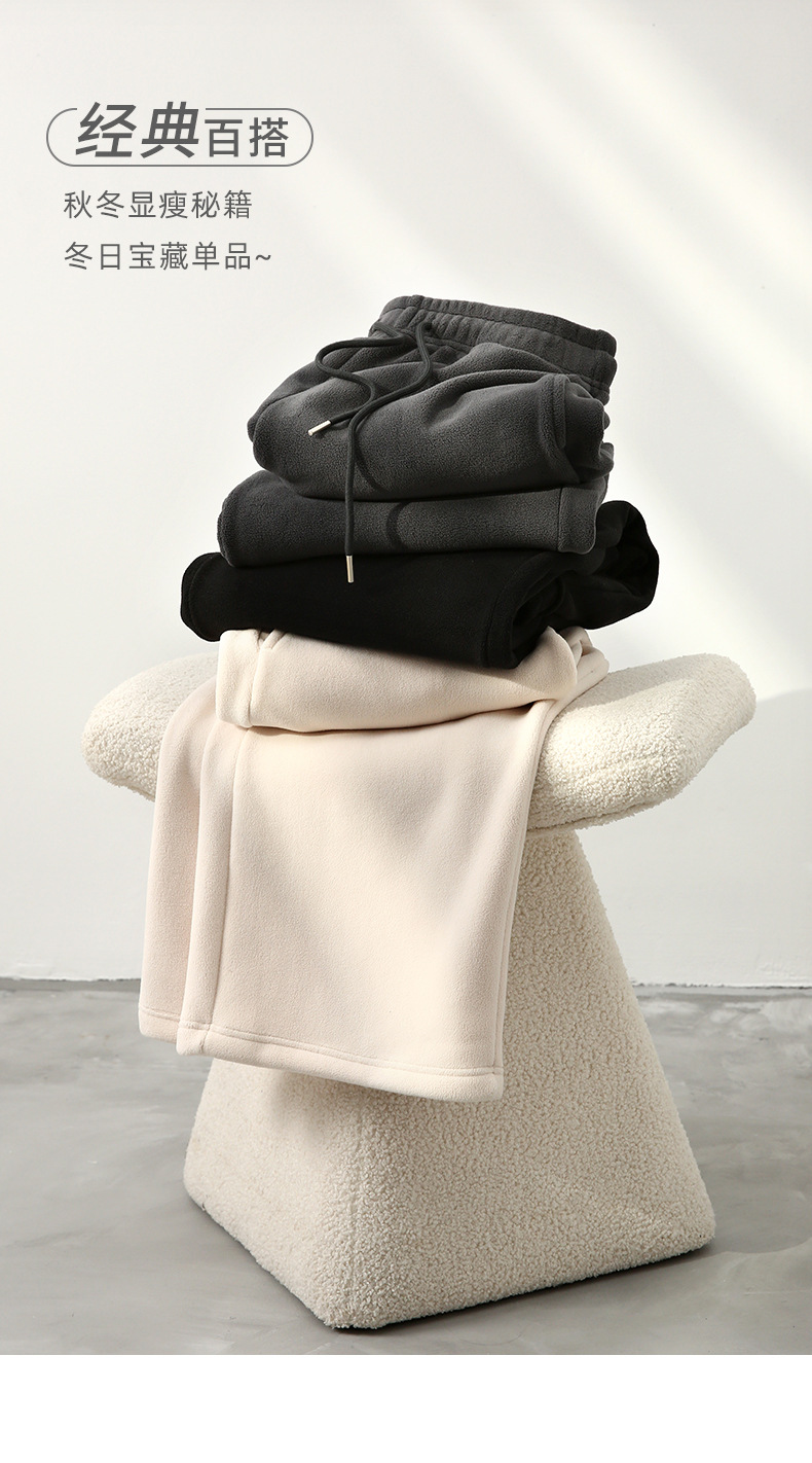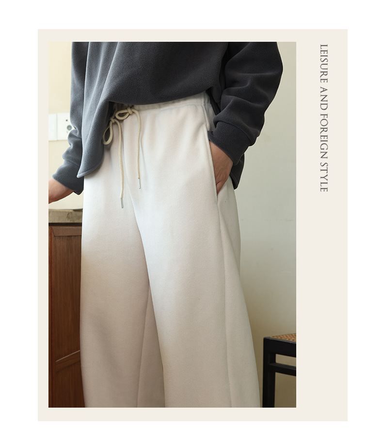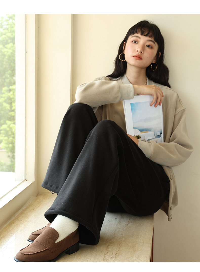 レディースカジュアルパンツ 秋冬 リバーシブルポーラーフリース 無地ストレートパンツ ハイウエスト ドレープストレートパンツ ゆったりワイドパンツ