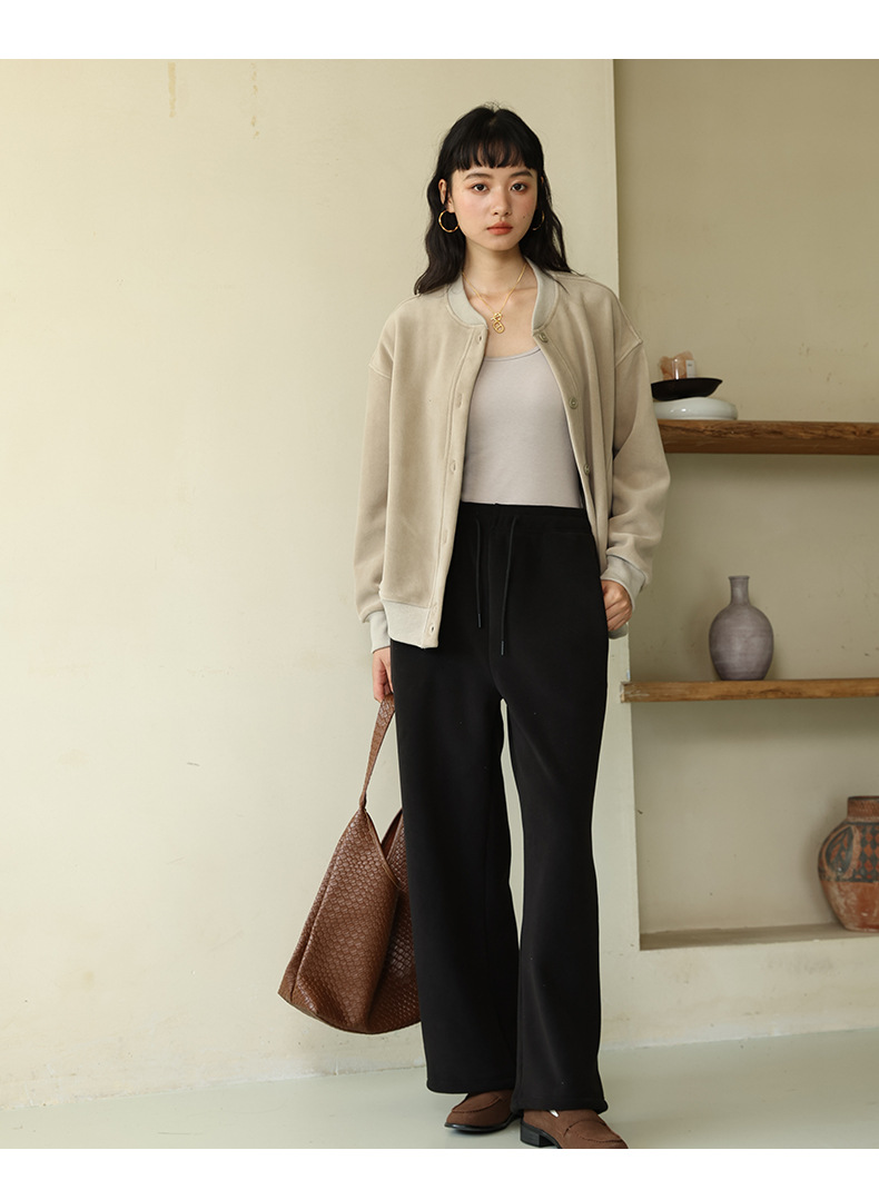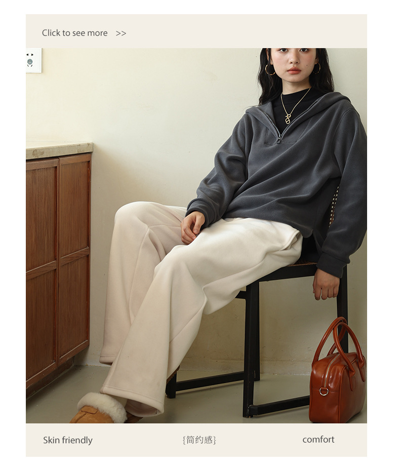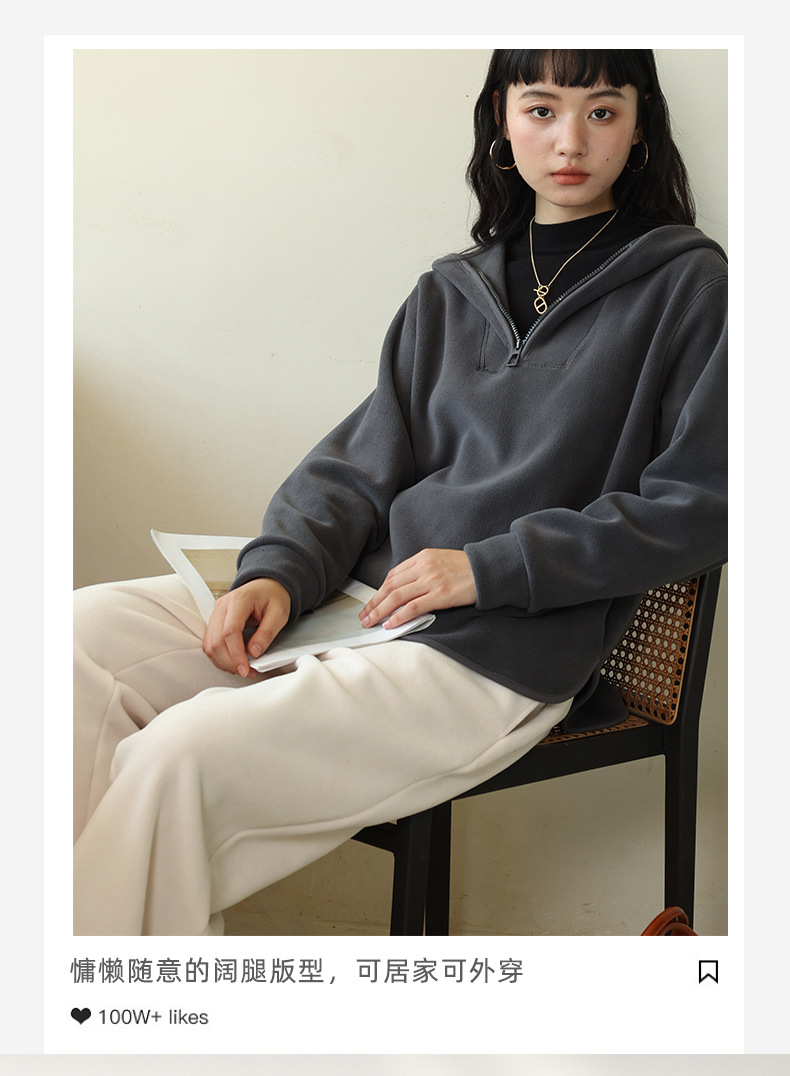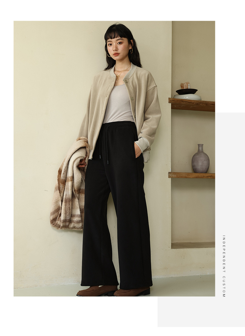 レディースカジュアルパンツ 秋冬 リバーシブルポーラーフリース 無地ストレートパンツ ハイウエスト ドレープストレートパンツ ゆったりワイドパンツ