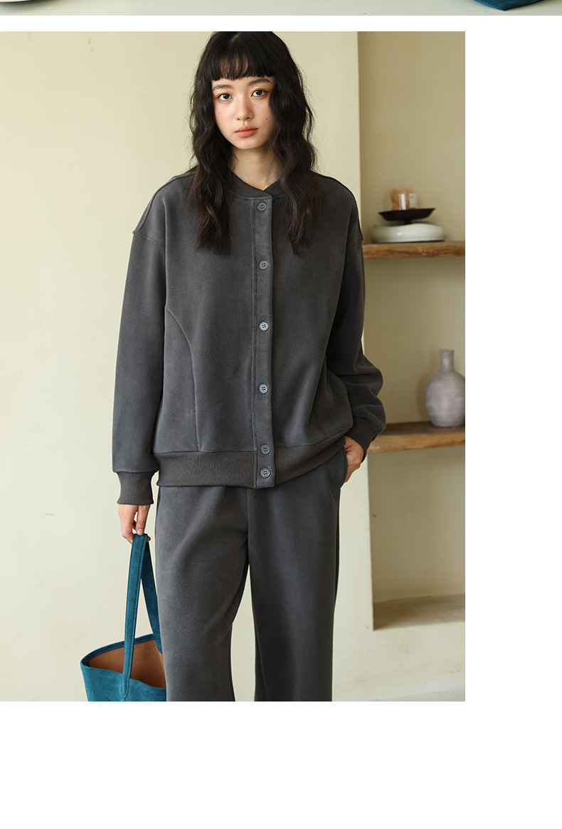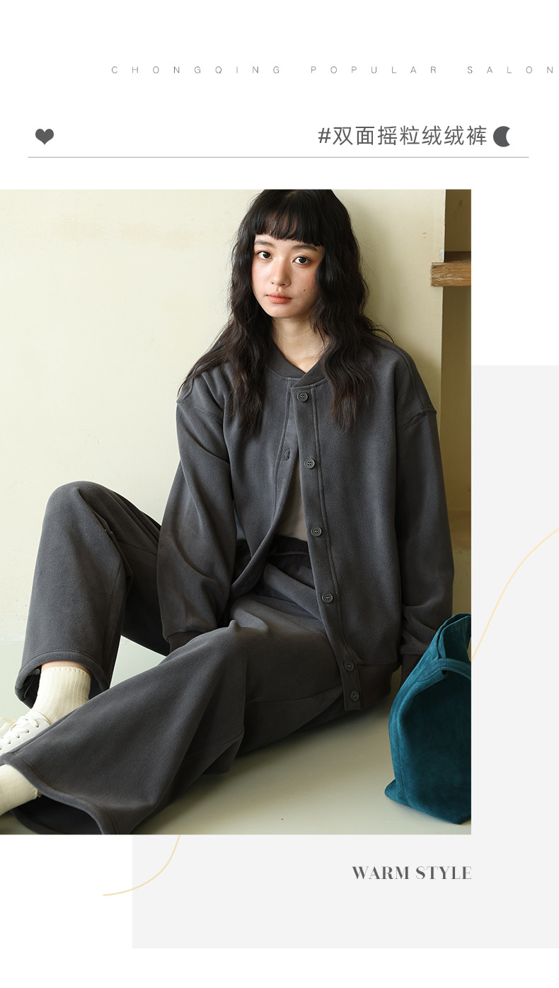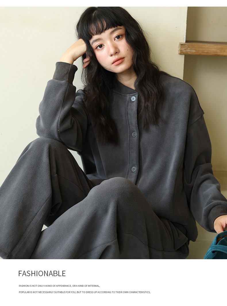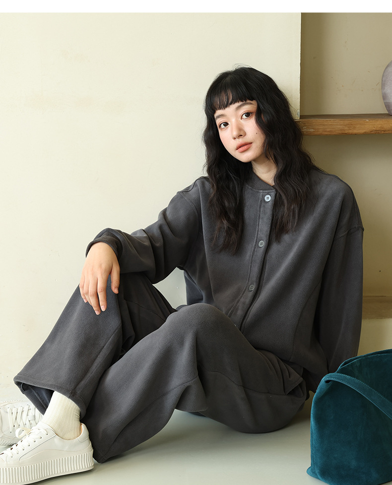 ホームウェア女性秋冬純色スーツゆるいボタン襟長袖上着カジュアルズボン柔らかいモチのパジャマ
