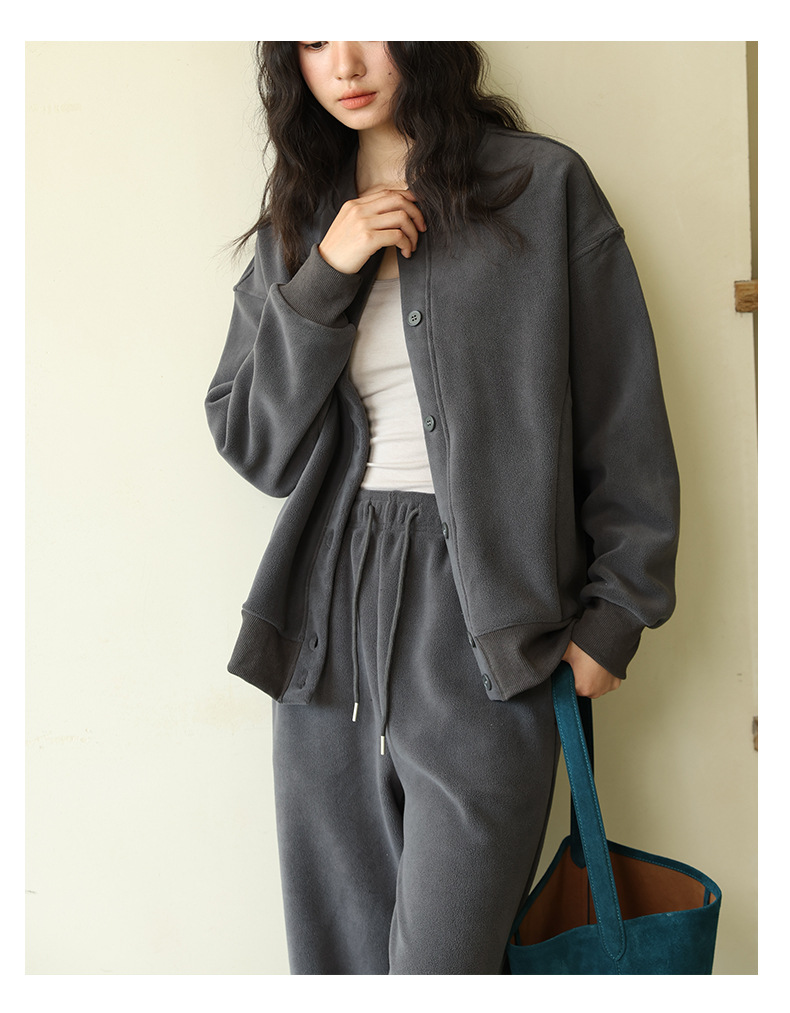 秋冬純色のフリースボタンのカーディガン
