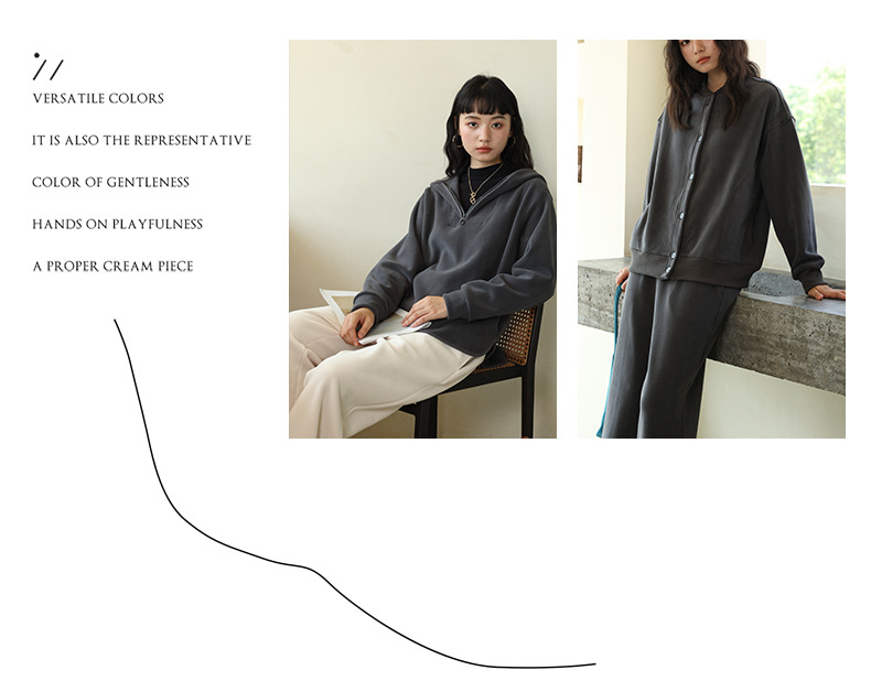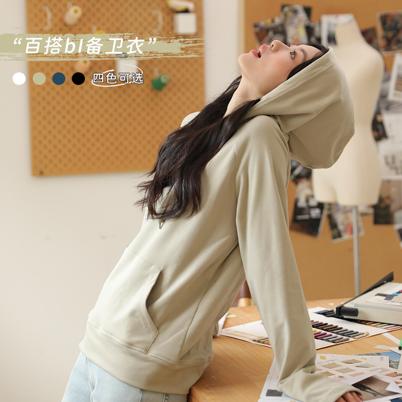 秋冬の帽子付きのゆったりしたパーカーの女性は、日韓カジュアルな上着とジッパー付きの長袖コートを厚くしています。