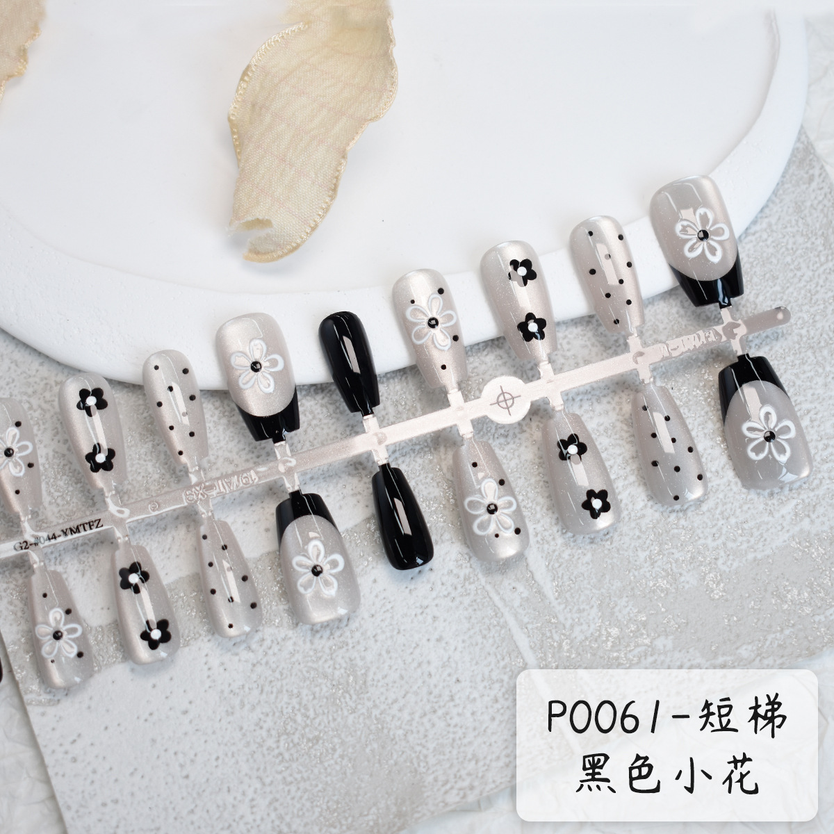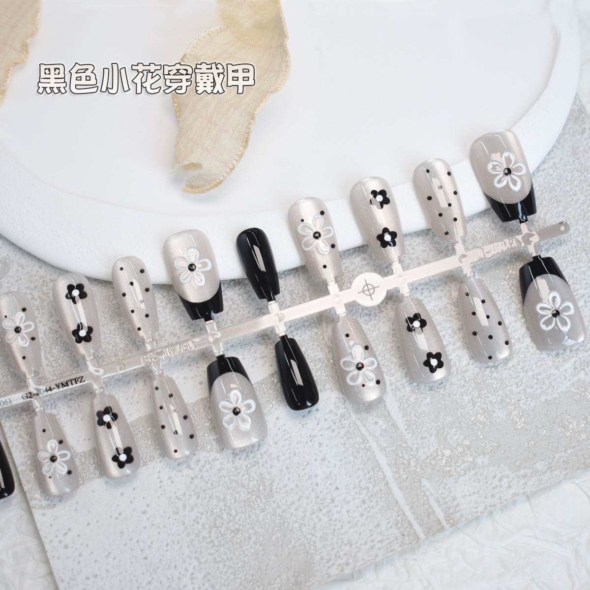 2024年インスタ风高级感猫眼小フラワーネイル夏の雰囲気感ブラックネイルポリッシュ