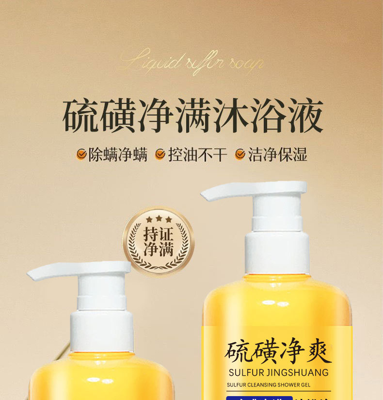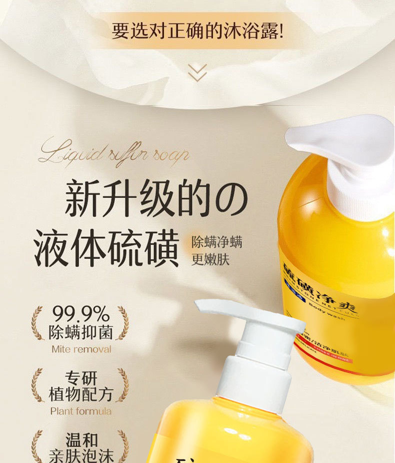 硫黄ネットフルシャワージェル、皮膚のかゆみ、ダニ除去、ニキビ洗浄、虫歯予防、抗菌液体石鹸、香り長持ち