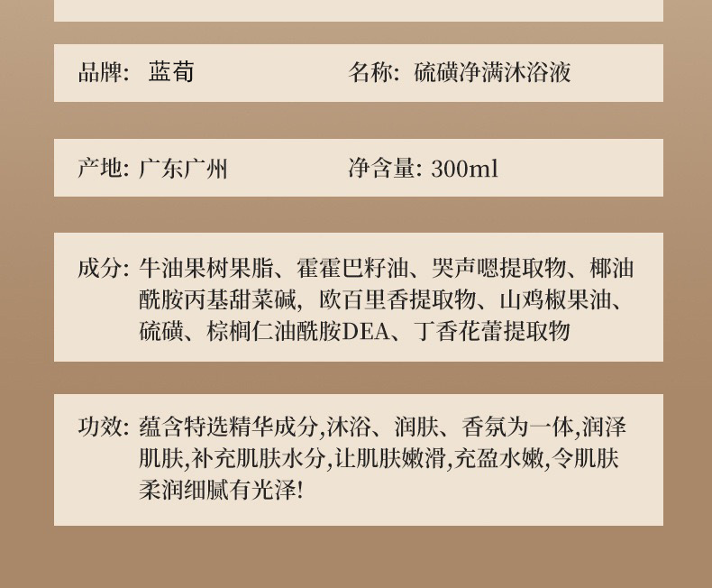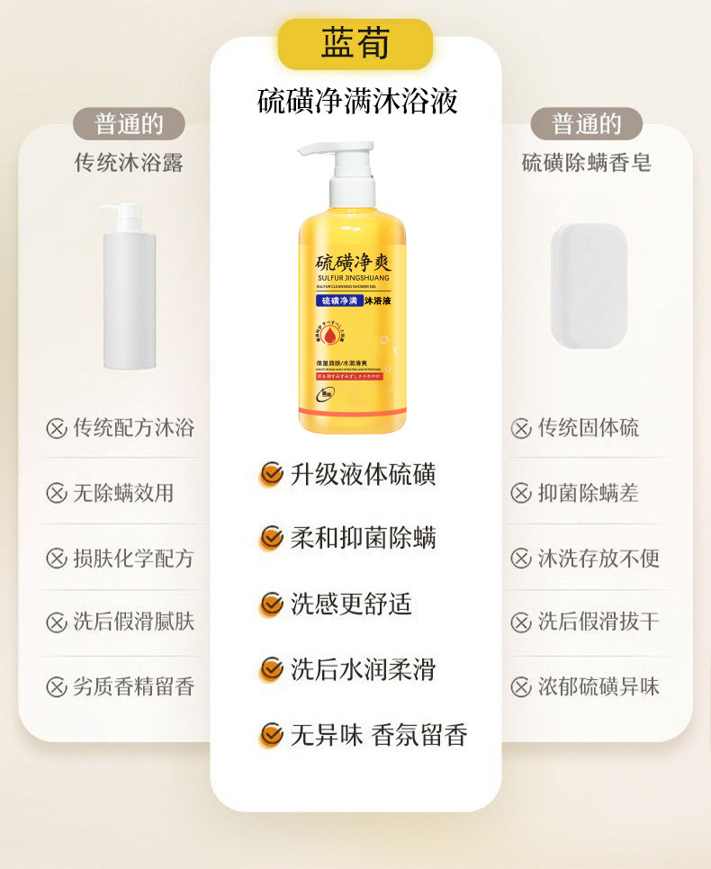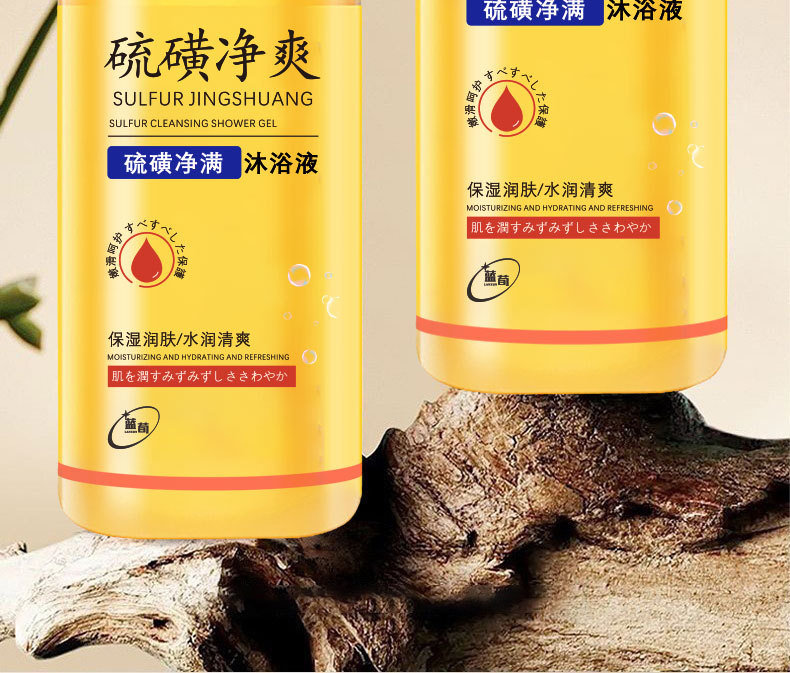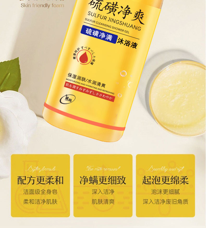 Lanchen 硫黄リフレッシュ シャワー ジェルは、ダニを除去し、油分をコントロールし、リフレッシュし、保湿し、かゆみを和らげ、ディープ クレンジングし、肌を滑らかにします。液体石鹸