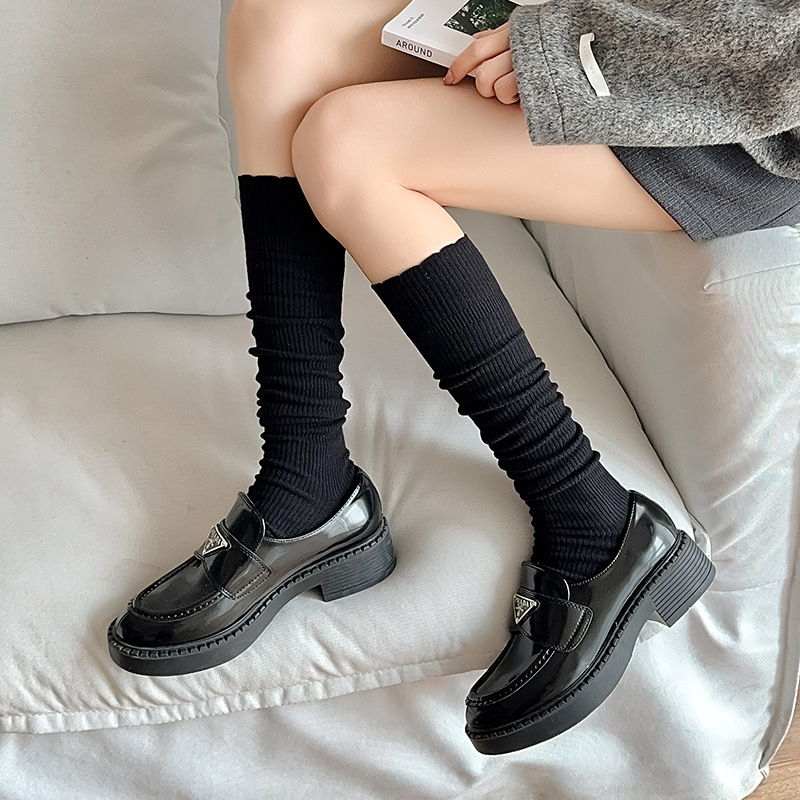 秋冬のふくらはぎの靴下の子供のins潮の韓国版と膝の綿の靴下の日系jkの純色の縦縞の長い筒の積み重ねの靴下