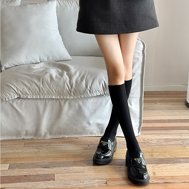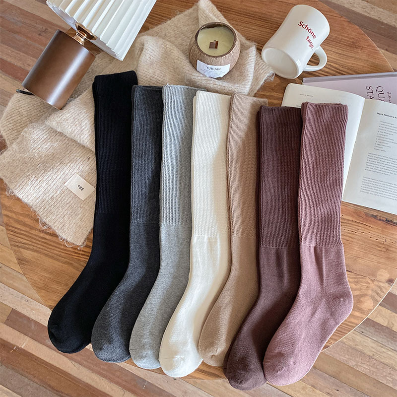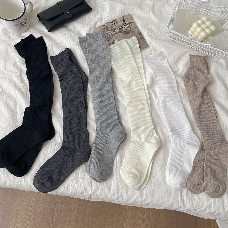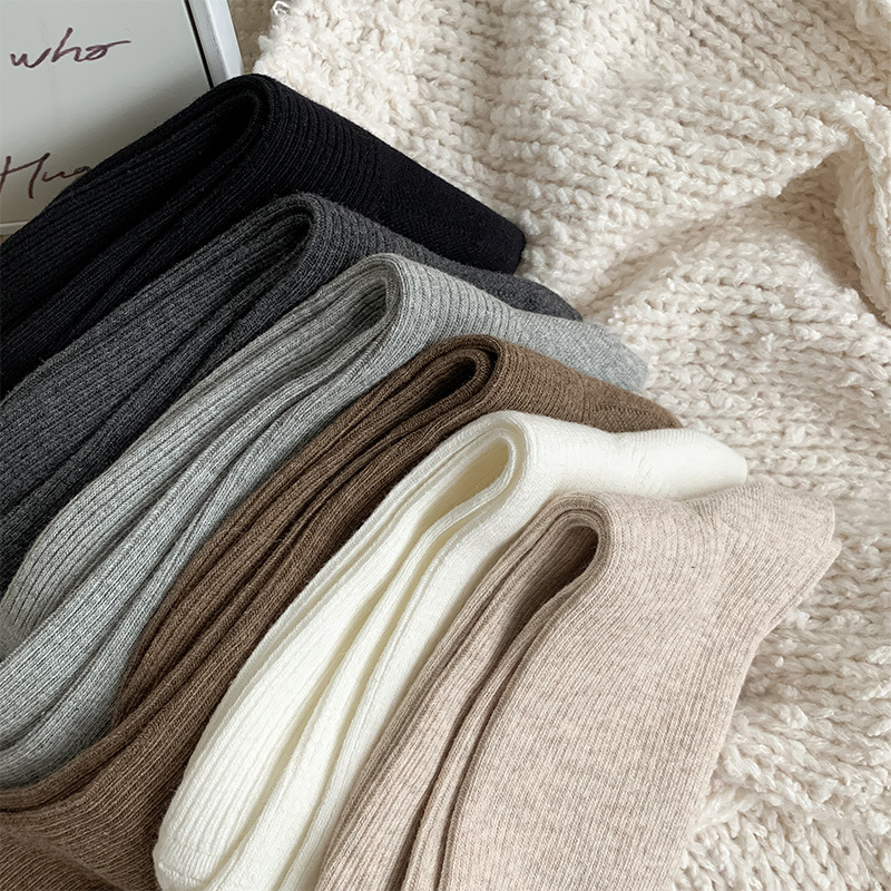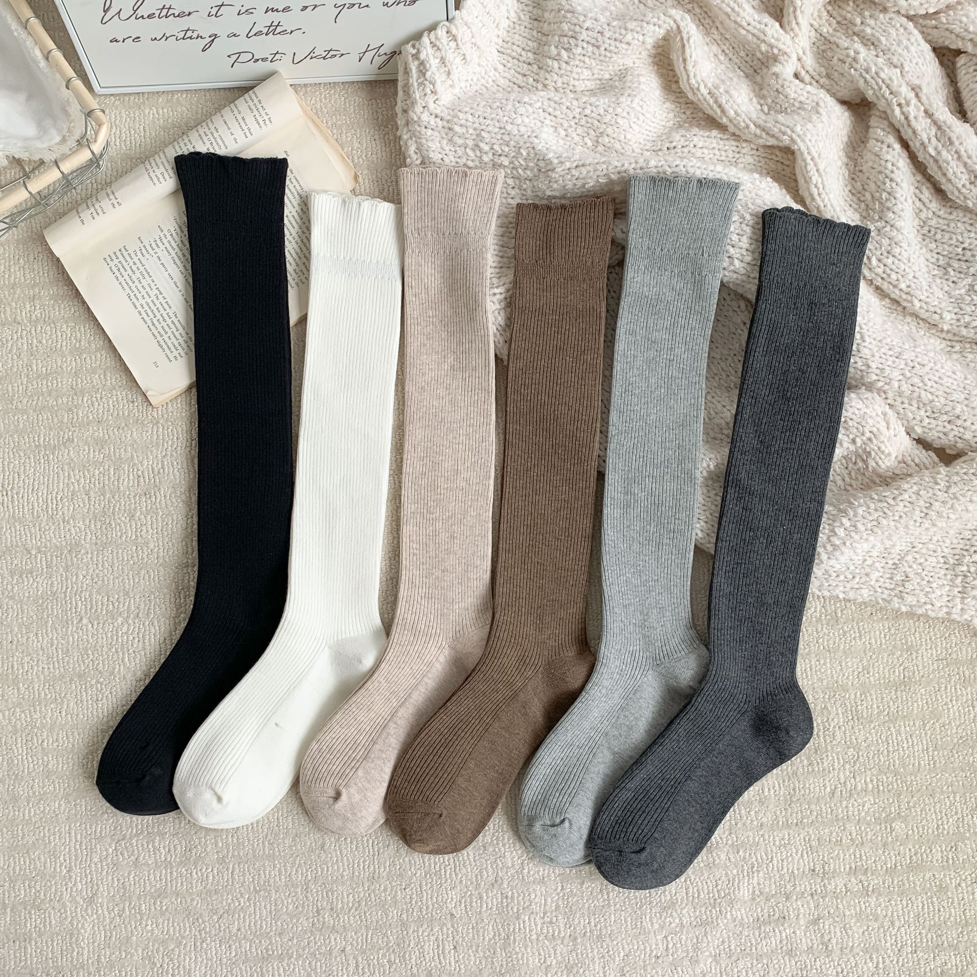 膝を越えた靴下の女性は秋冬に保温ウールストッキングins日系シンプルな純色の縦縞が痩せているjk靴下を厚くした