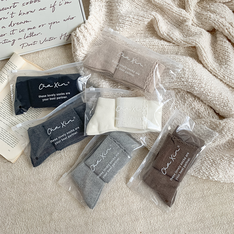 木の耳元の靴下の女性の積み重ねの靴下の秋冬の項の日本のシンプルな純色の百合のかわいい女子学生のレースの中で靴下