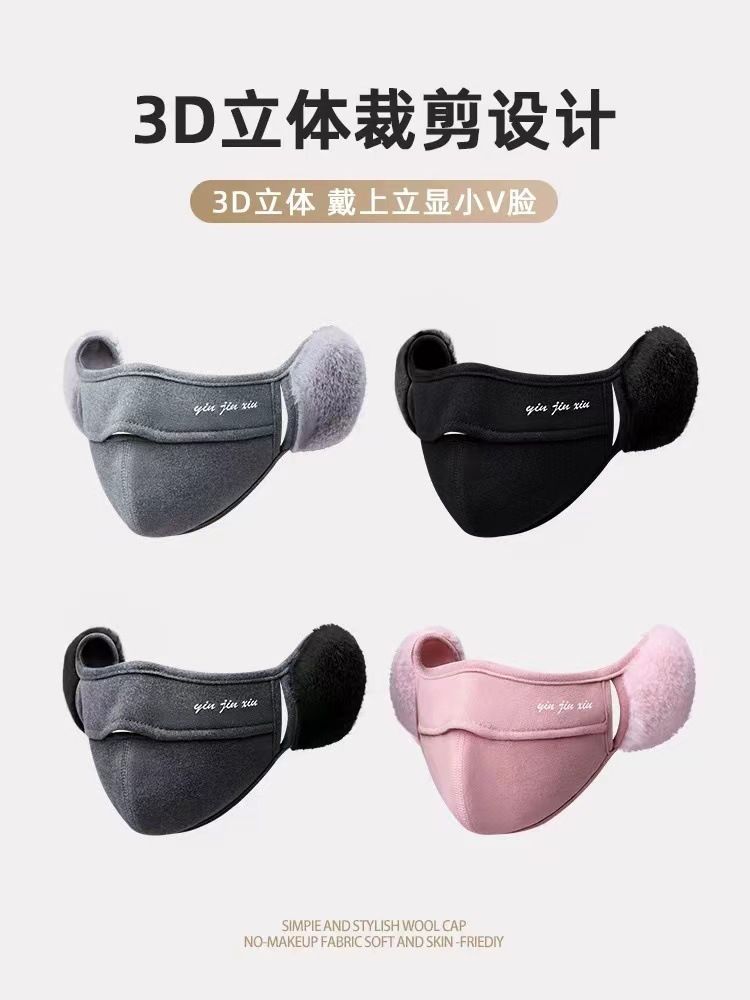 冬季保暖口罩女口耳一体高颜值挡风防寒加绒耳罩防冻骑行透气面罩