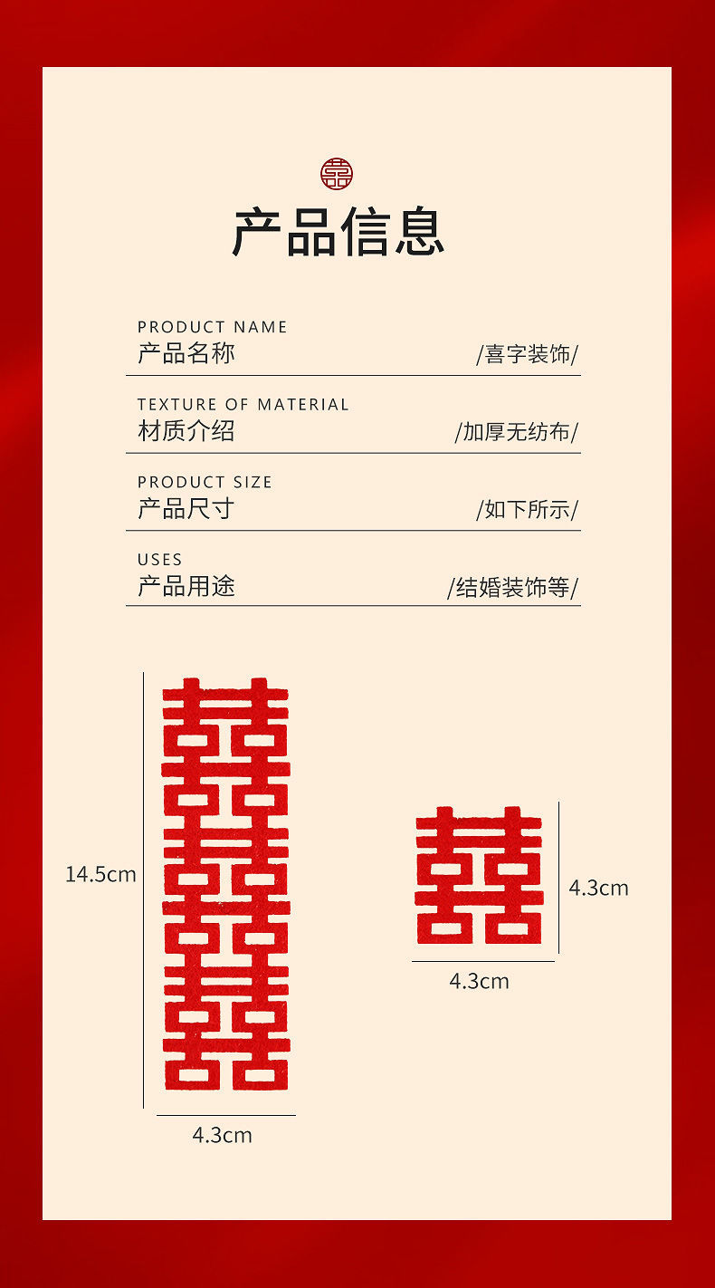 喜字装飾結婚式喜字貼りカラー不織布喜字延長喜字小長条